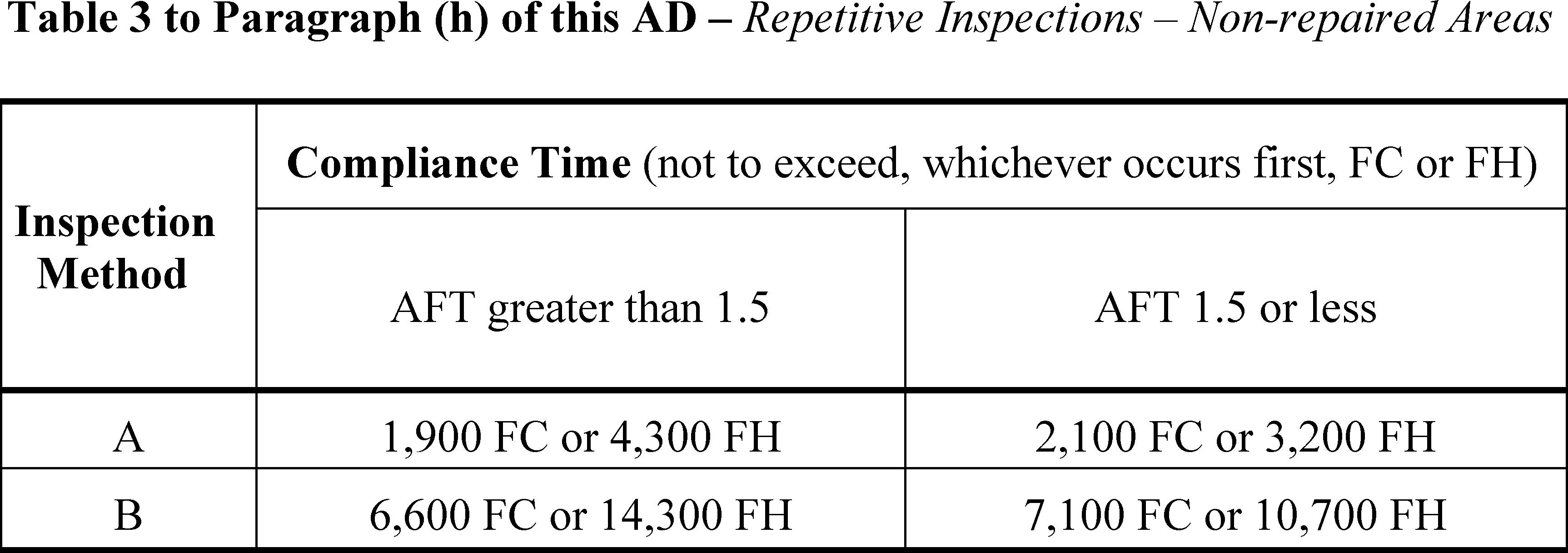 (1) For the purpose of this AD, the average flight time (AFT) can be established by dividing the flight hours (FHs) by the flight cycles (FCs) counted: