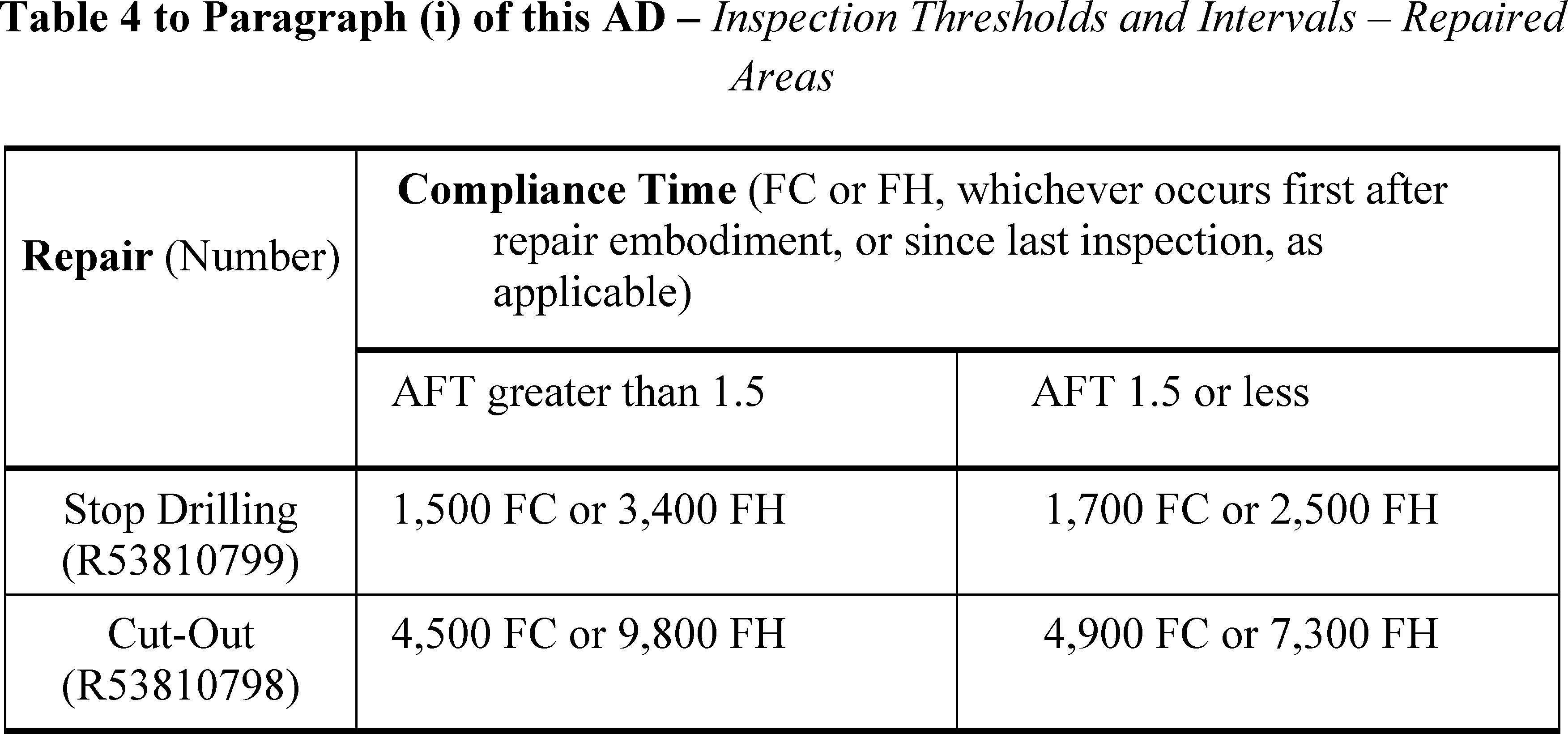 (i) From first flight, for selecting the inspection threshold of the non-repaired area.