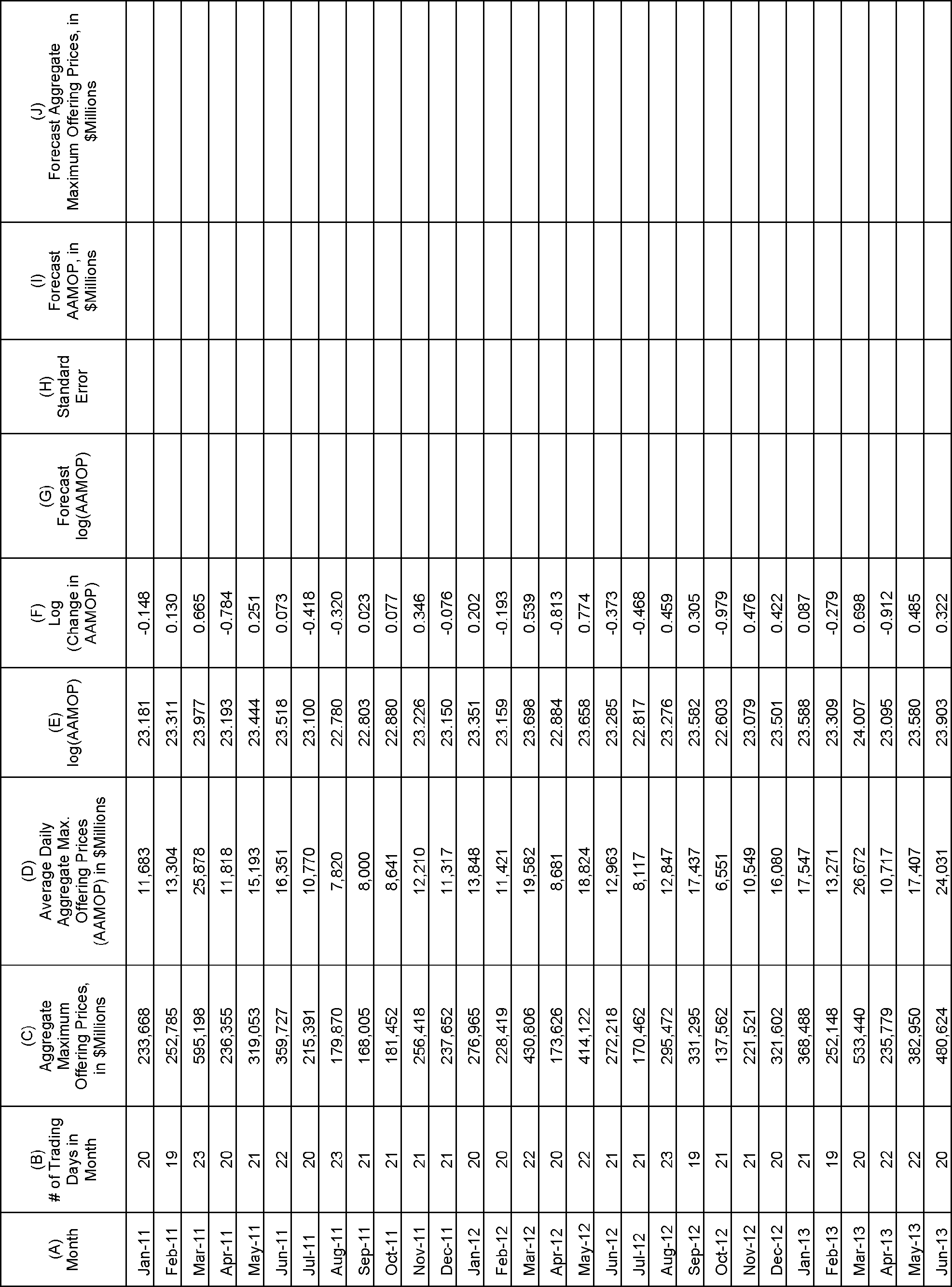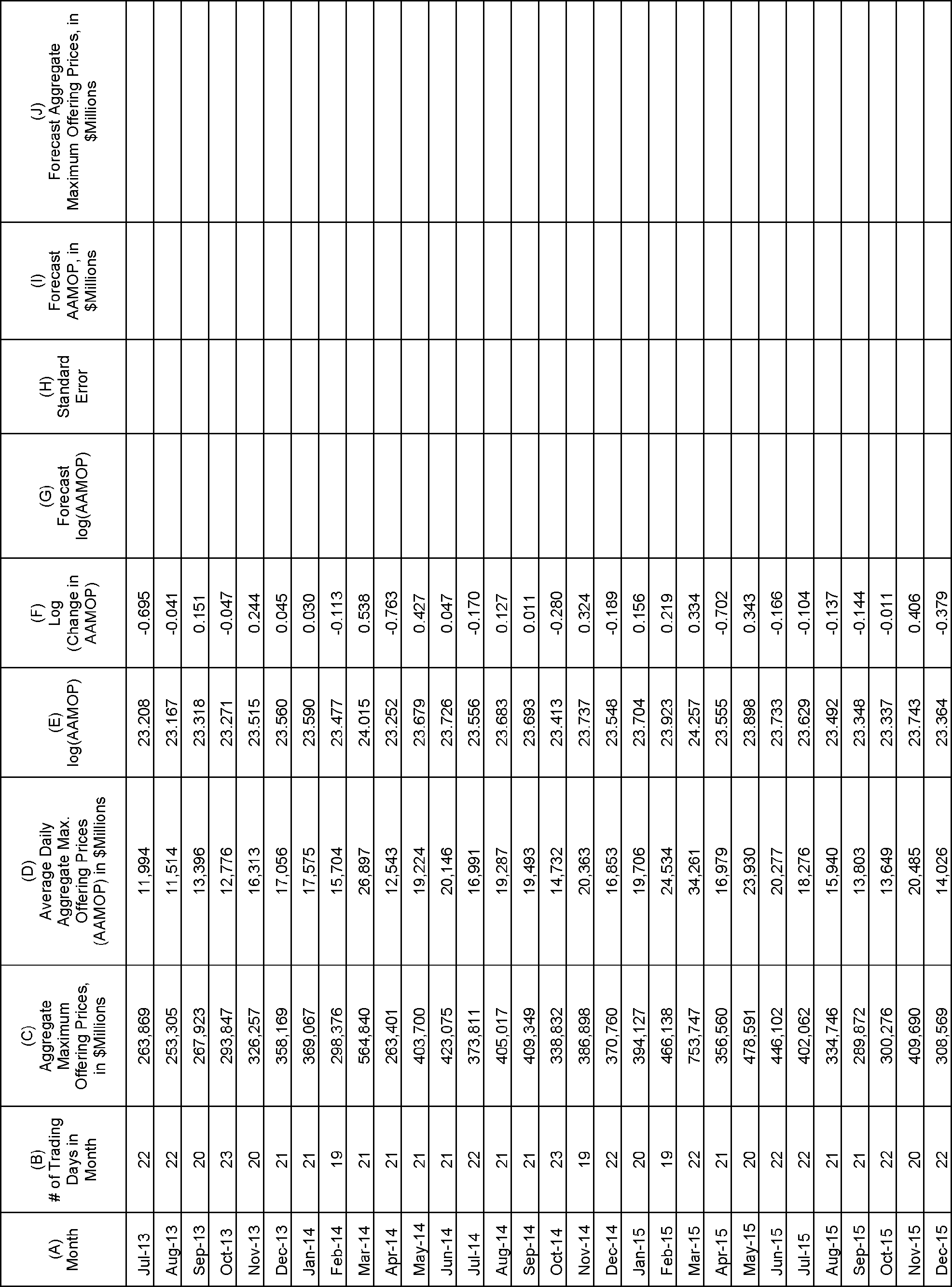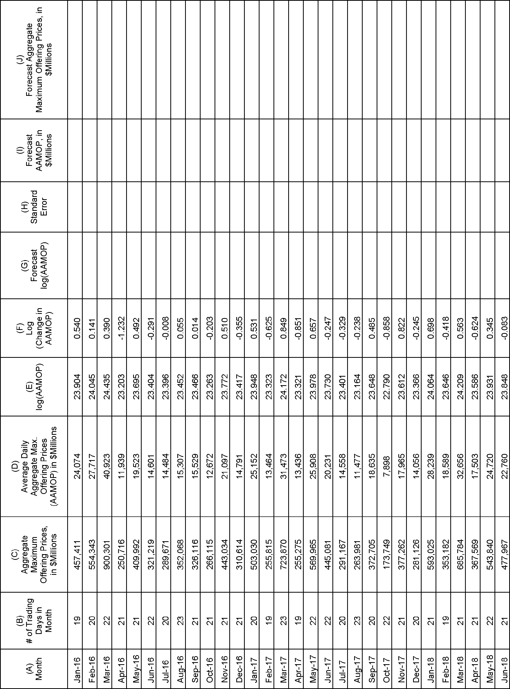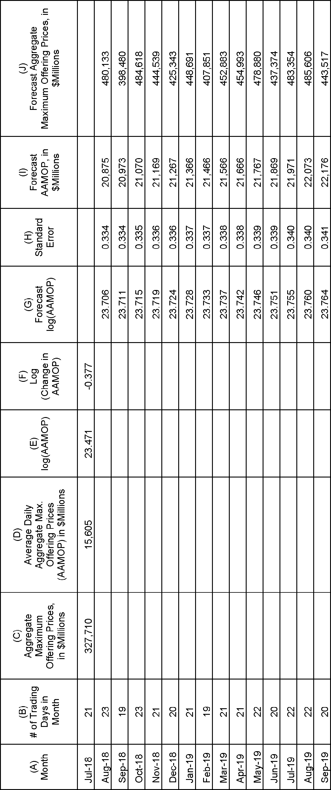 For 2019, the Commission has estimated the aggregate maximum offering prices by projecting forward the trend established in the previous decade. More specifically, an ARIMA model was used to forecast the value of the aggregate maximum offering prices for months subsequent to July 2018, the last month for which the Commission has data on the aggregate maximum offering prices.