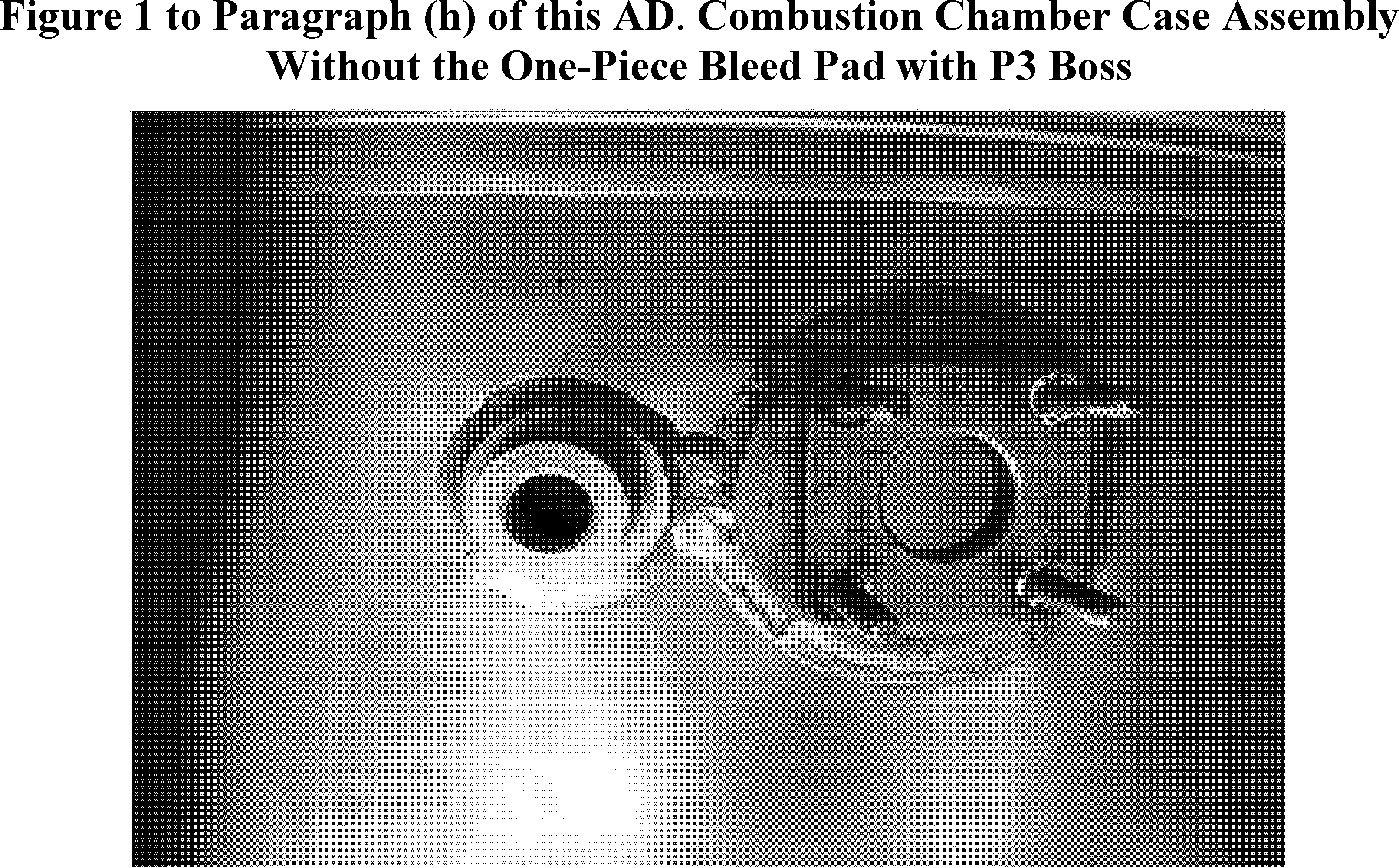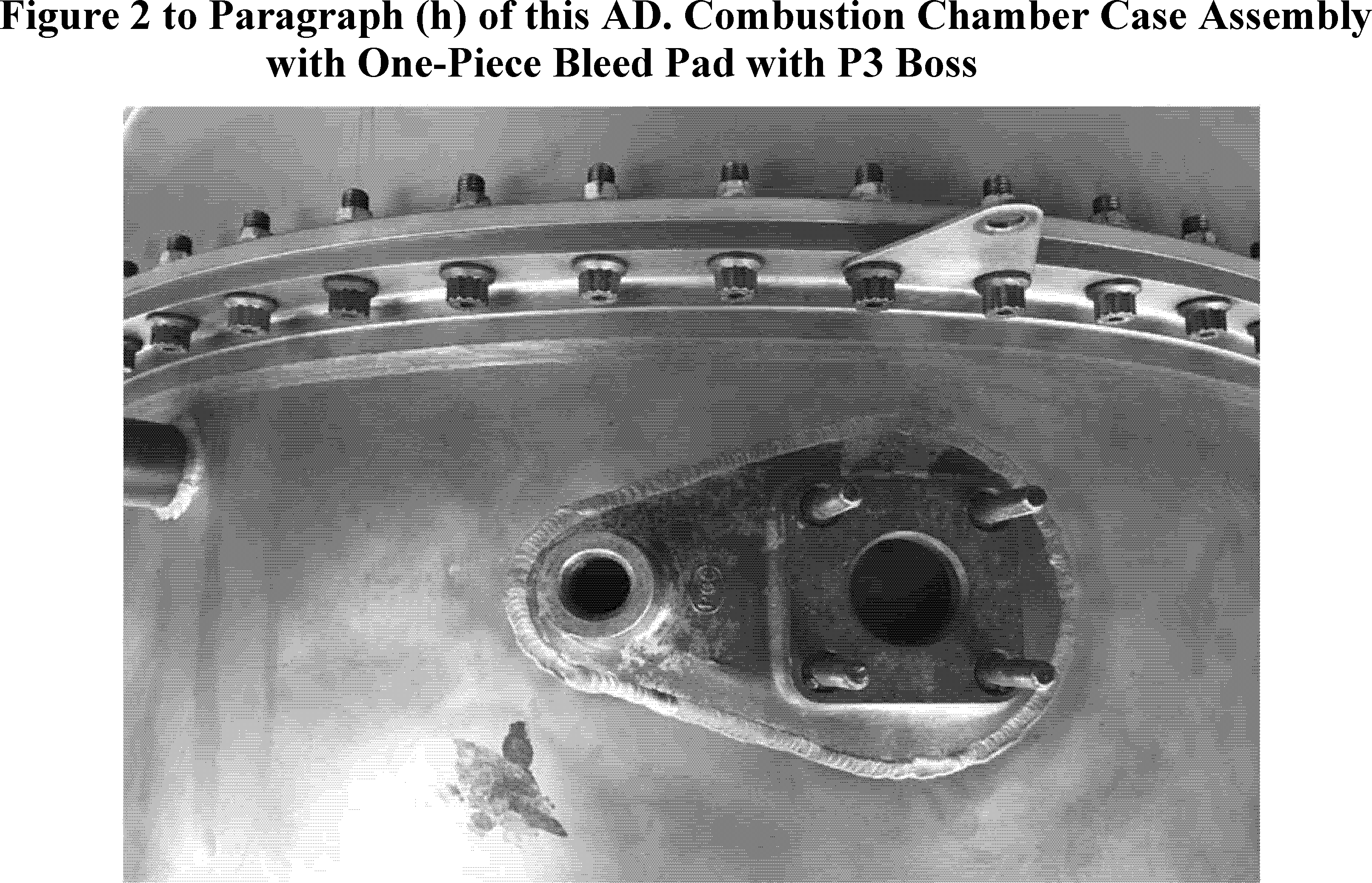 (2) Figures 1 and 2 to paragraph (h) of this AD illustrate the appearance of combustion chamber case assembly, P/N 893973-5, without and with, respectively, the one-piece bleed pad with the P3 boss.