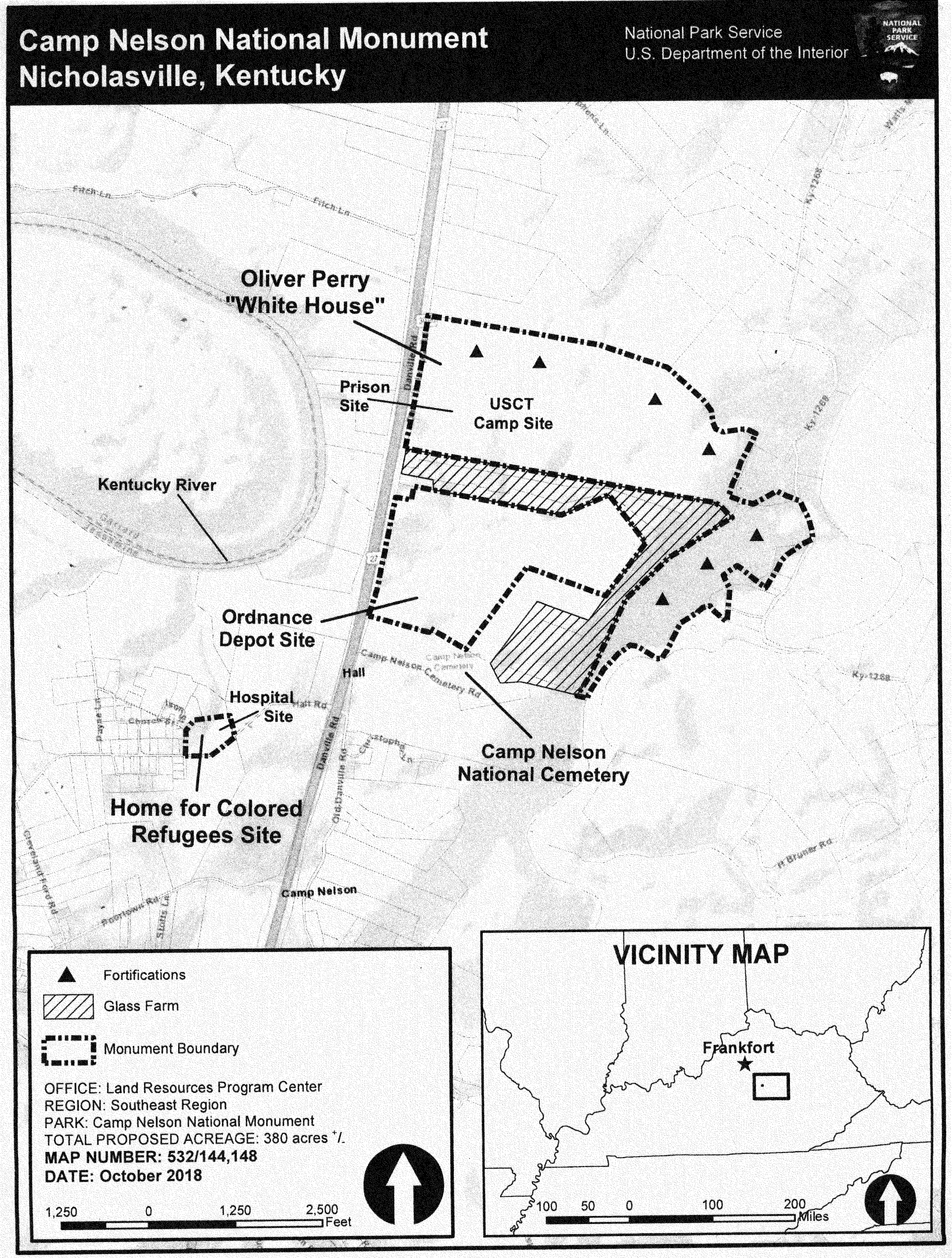 WHEREAS, the Camp Nelson Historic and Archeological District was designated as a National Historic Landmark in 2016 for its national significance as the site of one of the Nation's largest recruitment and training centers for African American soldiers during the Civil War, as well as a refugee camp for the families of those African American soldiers;