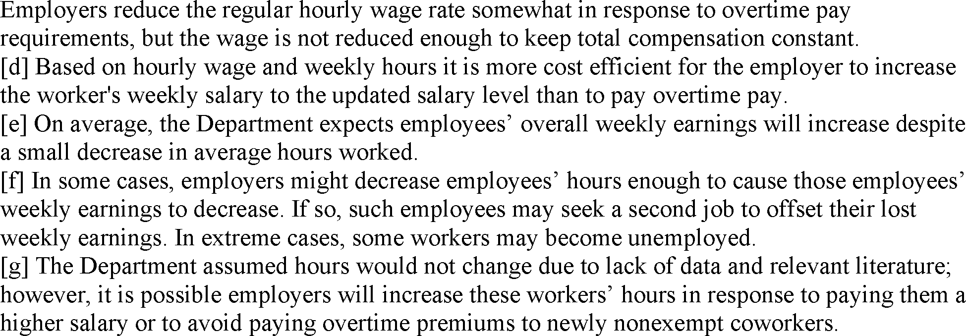 It is possible that these workers may experience an increase in hours and weekly earnings because of transfers of hours from overtime workers. Due to the high level of uncertainty in employers' responses regarding the transfer of hours, the Department did not have credible evidence to support an estimation of the number of hours transferred to other workers.