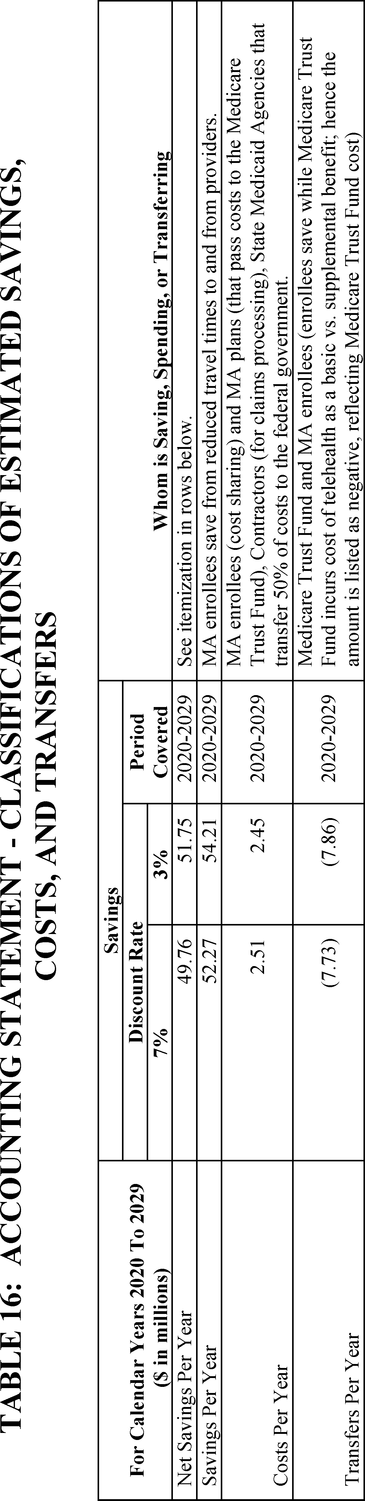 MA additional telehealth benefits are expected to produce $557 million in savings for enrollees over 10 years from reduced travel time to and from providers. The impact of paying for MA additional telehealth benefits out of the Medicare Trust Fund (as basic benefits) versus out of the rebates (as supplemental benefits) results in a transfer of $80 million from the Medicare Trust Fund to enrollees over 10 years.