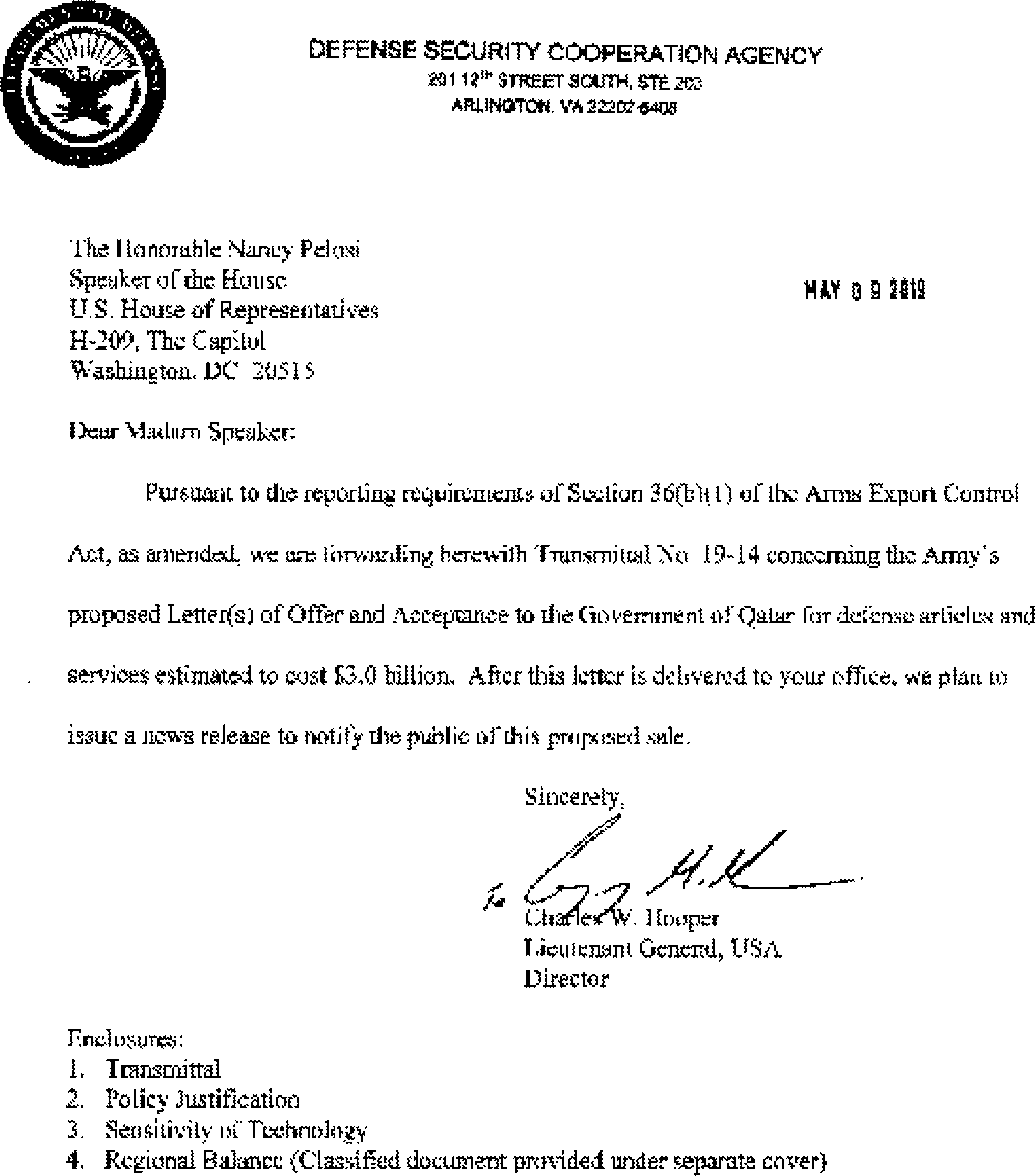 14. All defense articles and services listed in this transmittal are authorized for release and export to the Government of Qatar.