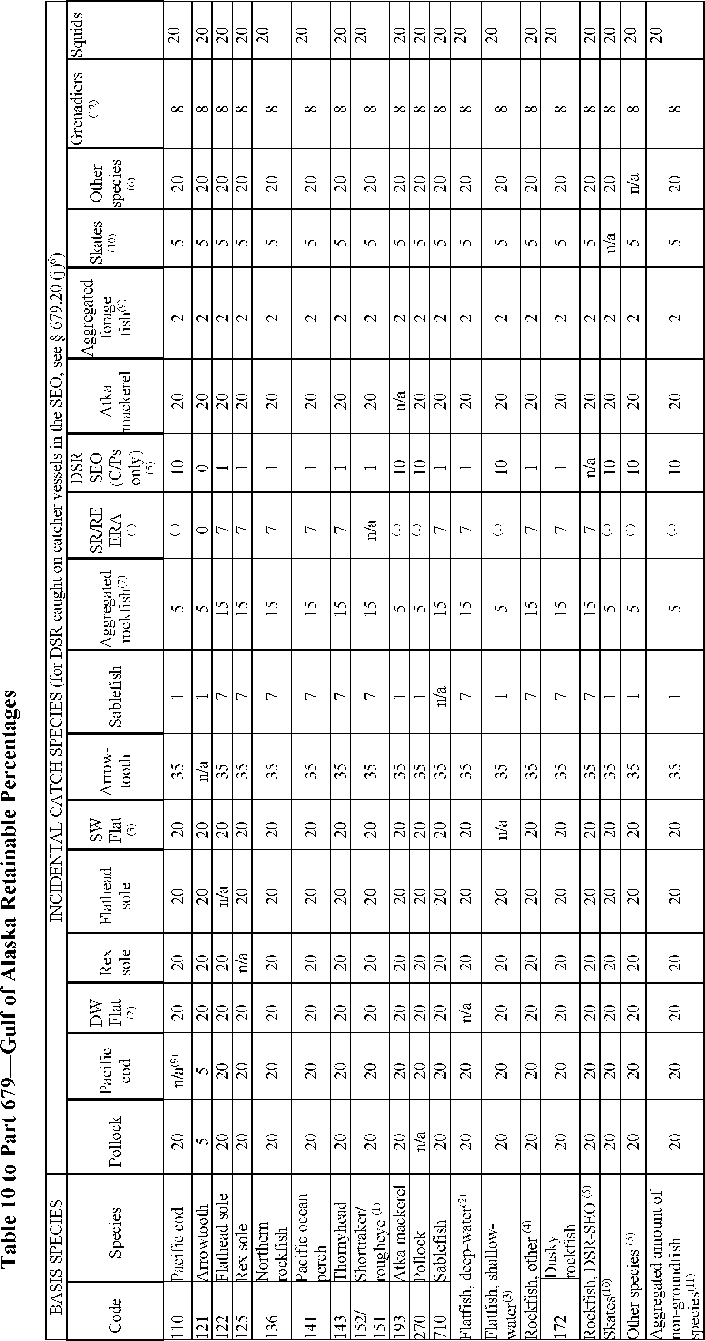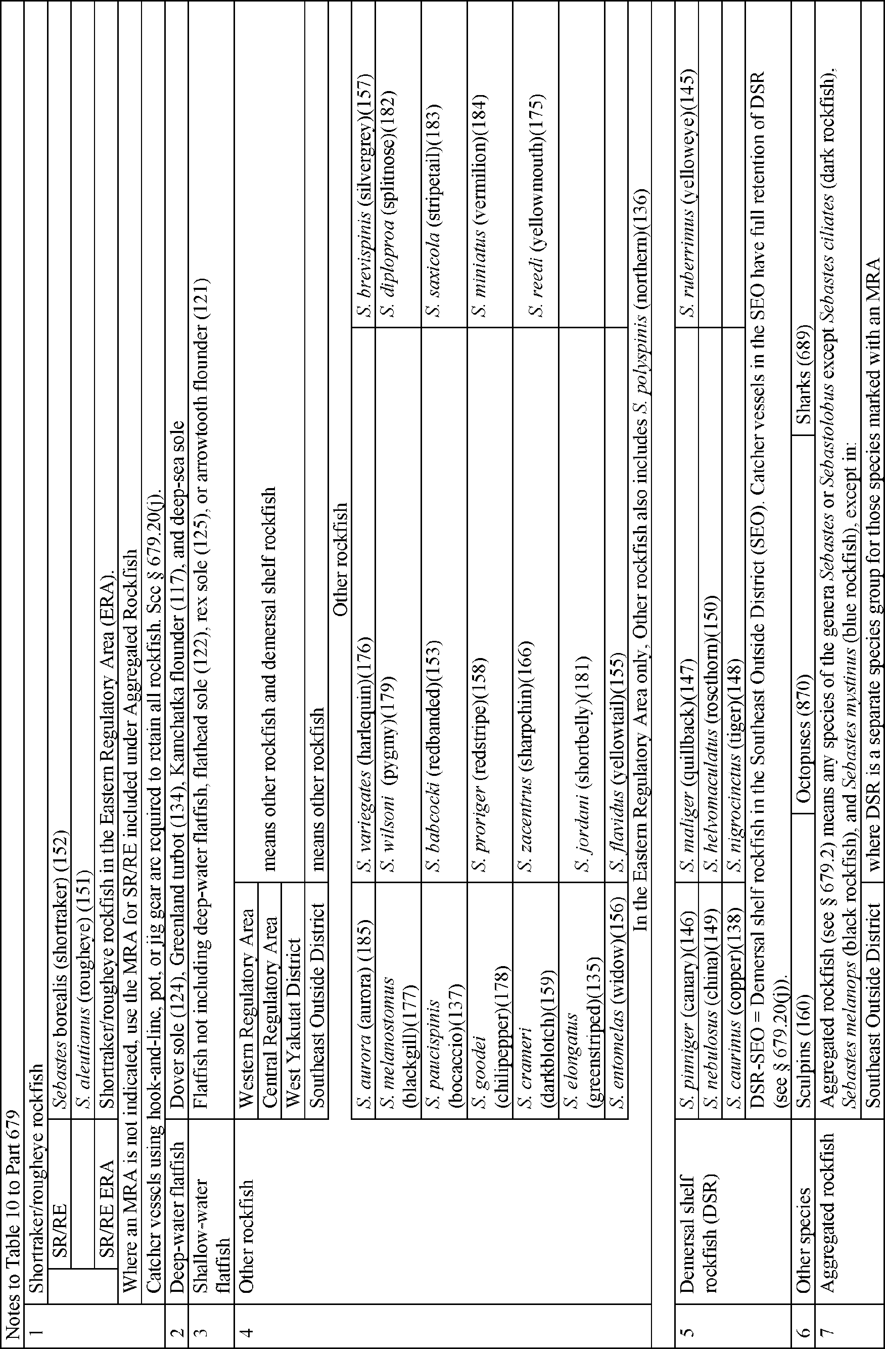 5. Revise Table 10 to part 679 to read as follows: