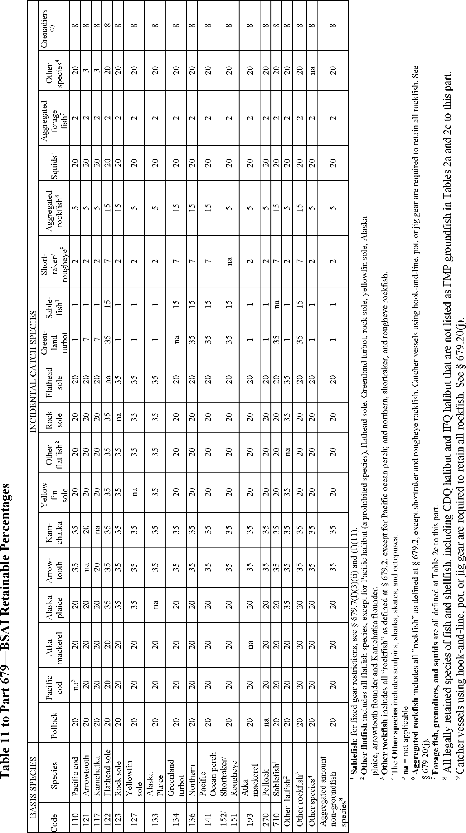 6. Revise Table 11 to part 679 to read as follows: