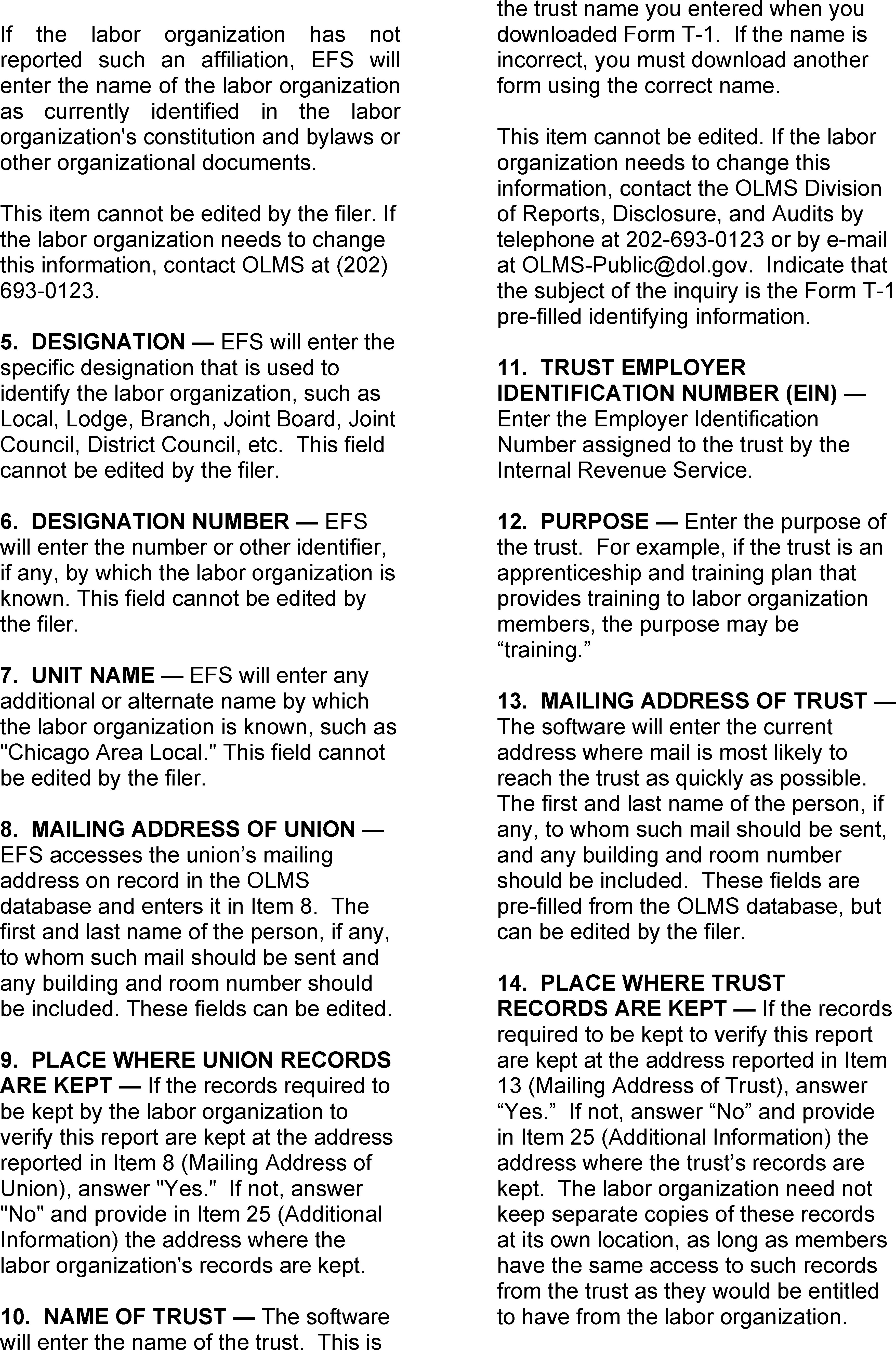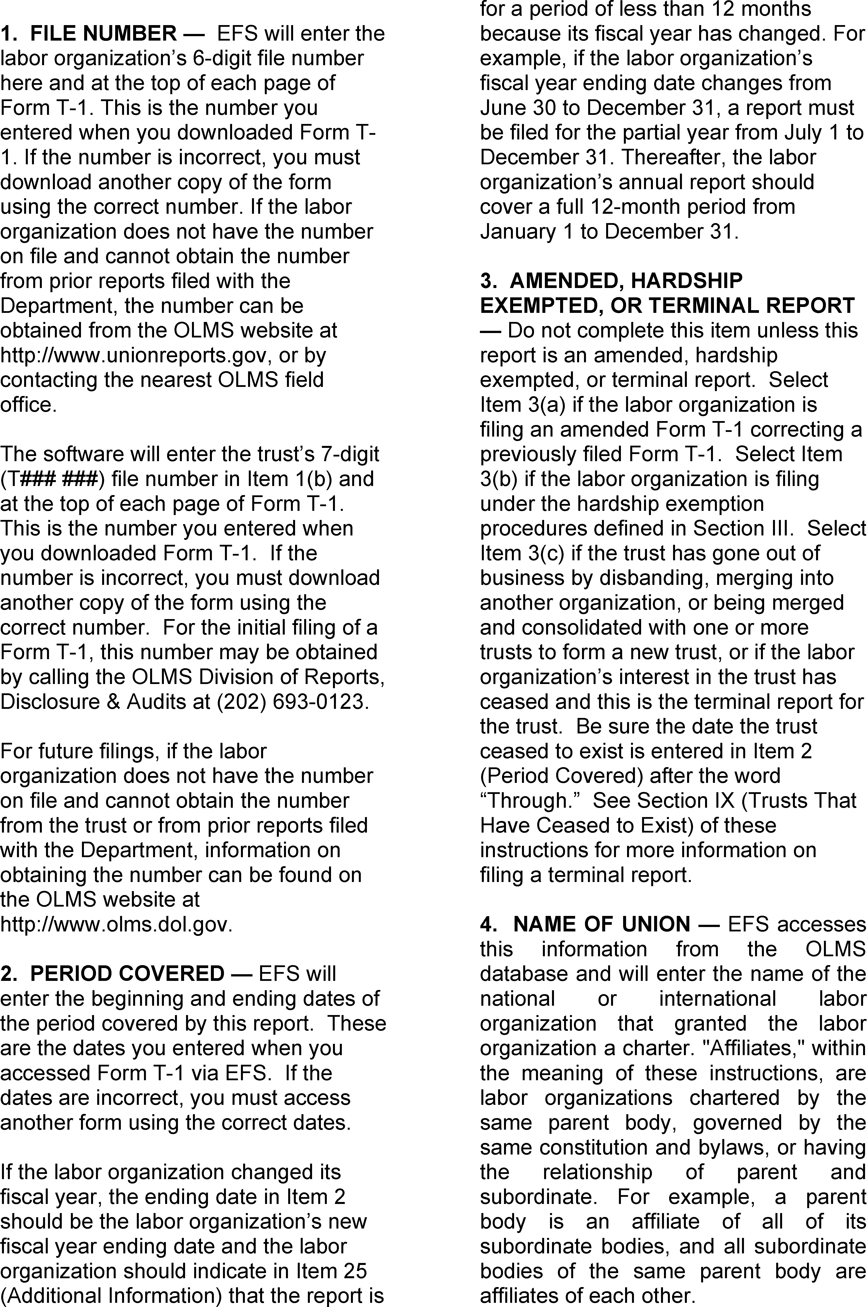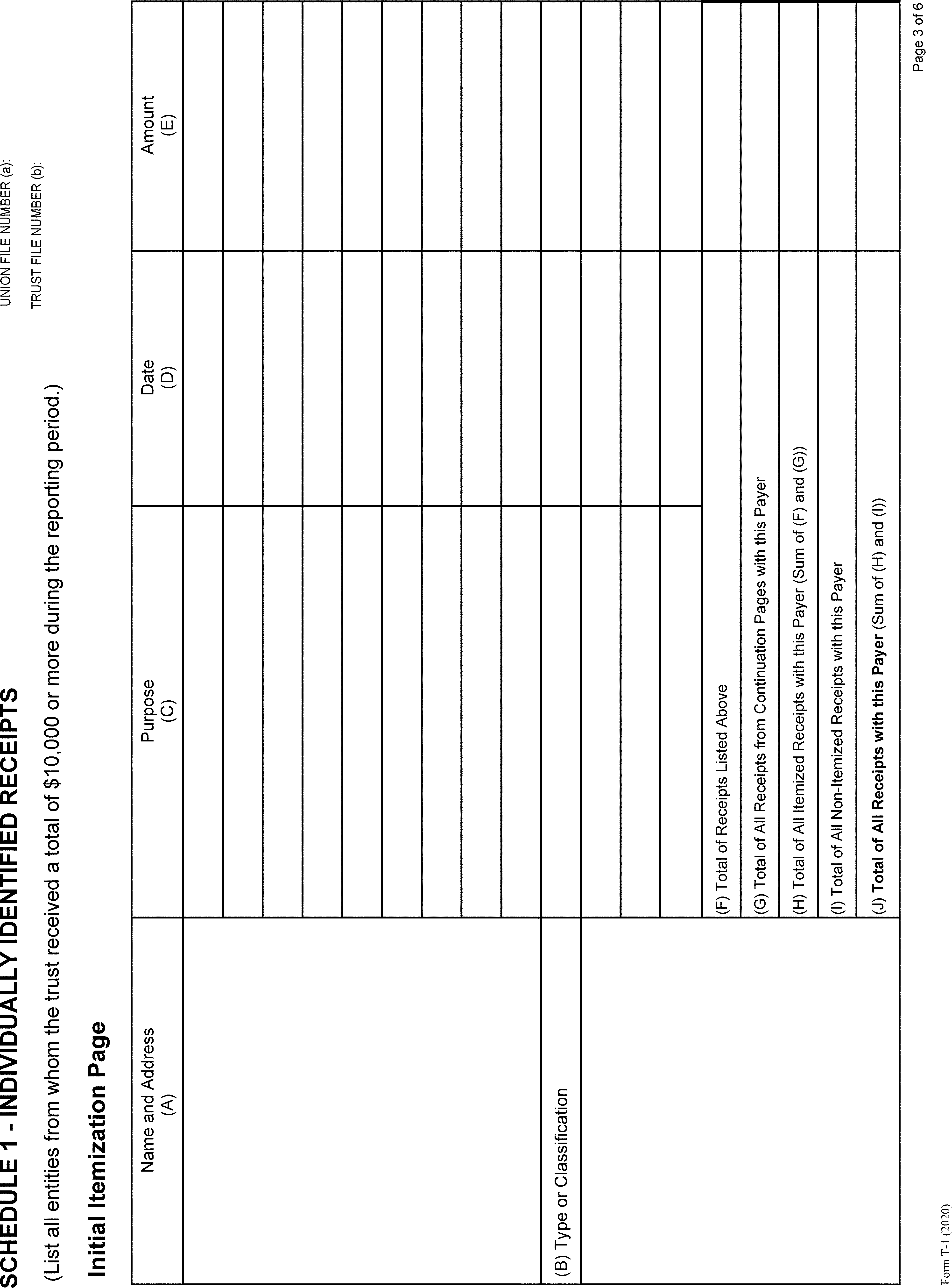 Labor Organization Annual Financial Reports For Trusts In Which A Labor Organization Is Interested, Form T-1