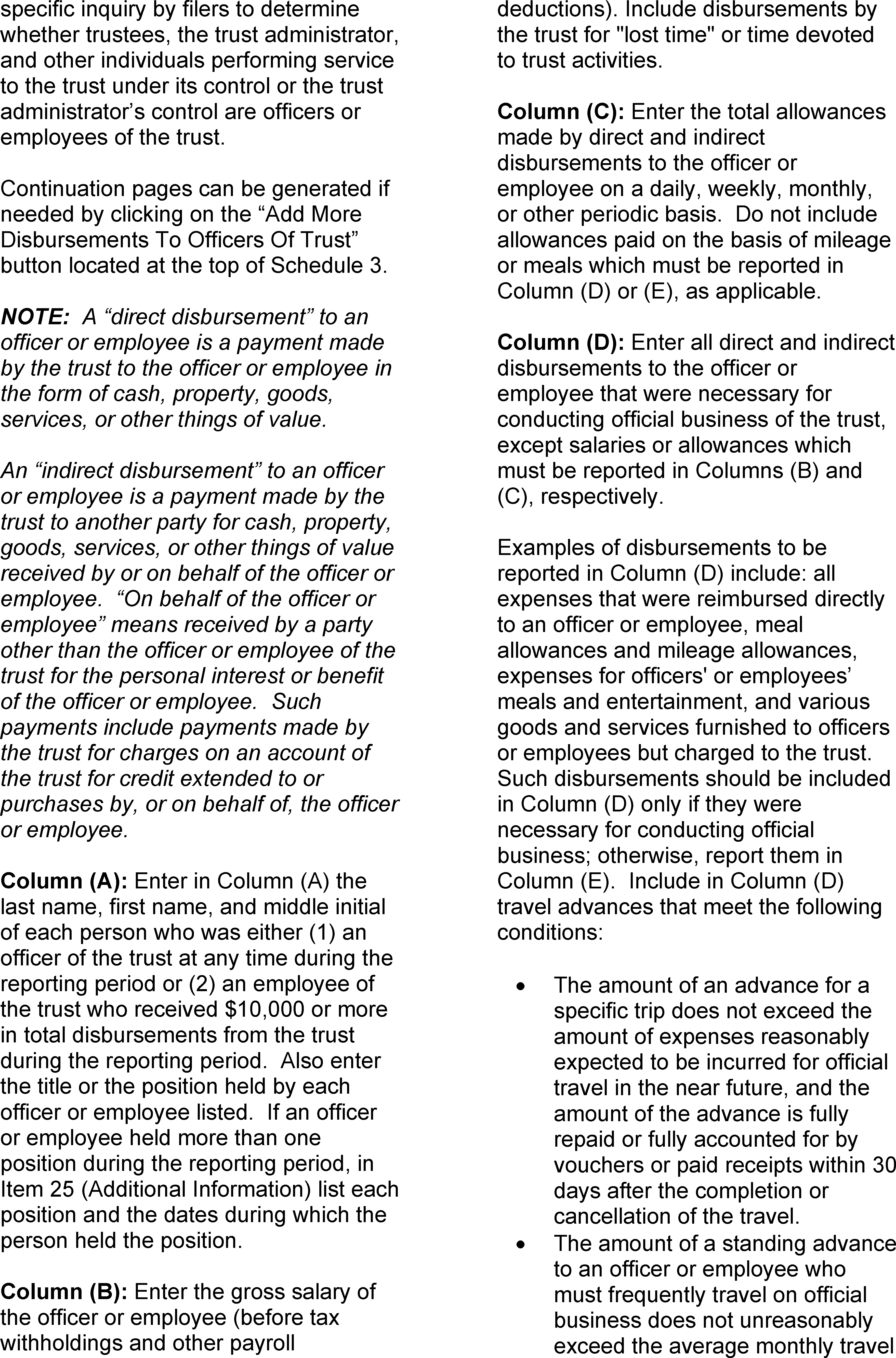 The authority to prescribe rules relating to section 3(l) trusts augments the Secretary's general authority to prescribe the form and publication of other reports required to be filed under the LMRDA. Section 201 of the Act requires unions to file annual, public reports with the Department, detailing the union's cash flow during the reporting period, and identifying its assets and liabilities, receipts, salaries and other direct or indirect disbursements to each officer and all employees receiving $10,000 or more in aggregate from the union, direct or indirect loans (in excess of $250 aggregate) to any officer, employee, or member, any loans (of any amount) to any business enterprise, and other disbursements. 29 U.S.C. 431(b). The statute requires that such information shall be filed “in such detail as may be necessary to disclose [a union's] financial conditions and operations.”