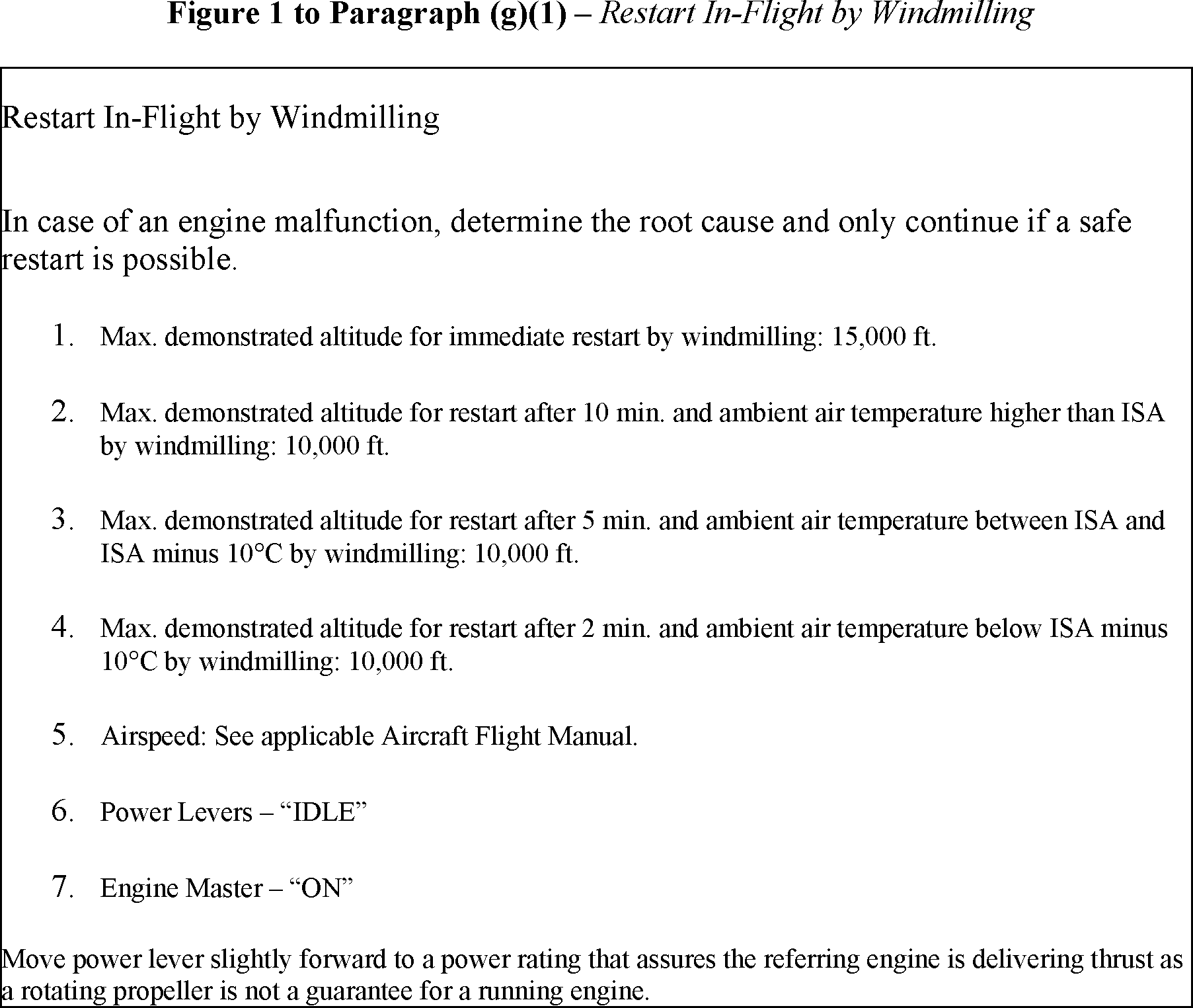 (1) Within 30 days after the effective date of this AD, under the Emergency Procedures chapter, amend the applicable airplane flight manual (AFM) by adding the information in Figure 1 to paragraph (g)(1) of this AD to limit the use of a windmilling restart to only an emergency procedure.
