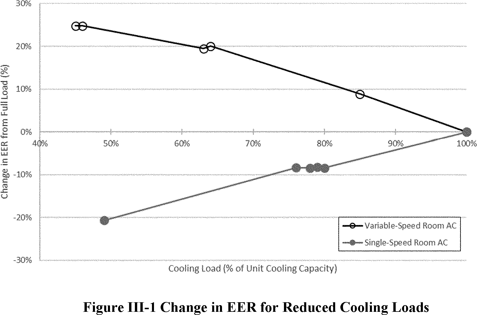 Variable-speed room air conditioner performance adjustment factor.