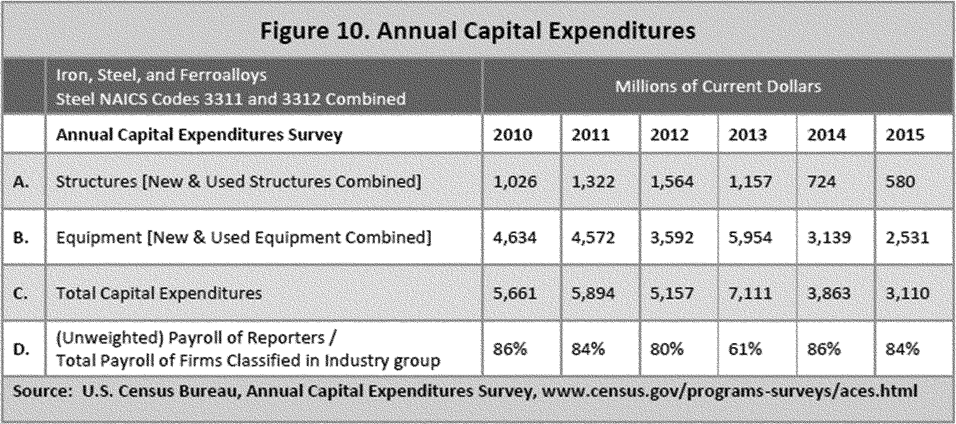 The Department updated that analysis for this report using 2007 data (the latest available) and determined that domestic consumption in critical industries has increased significantly, with 54 million metric tons of steel now being consumed annually in critical industries.