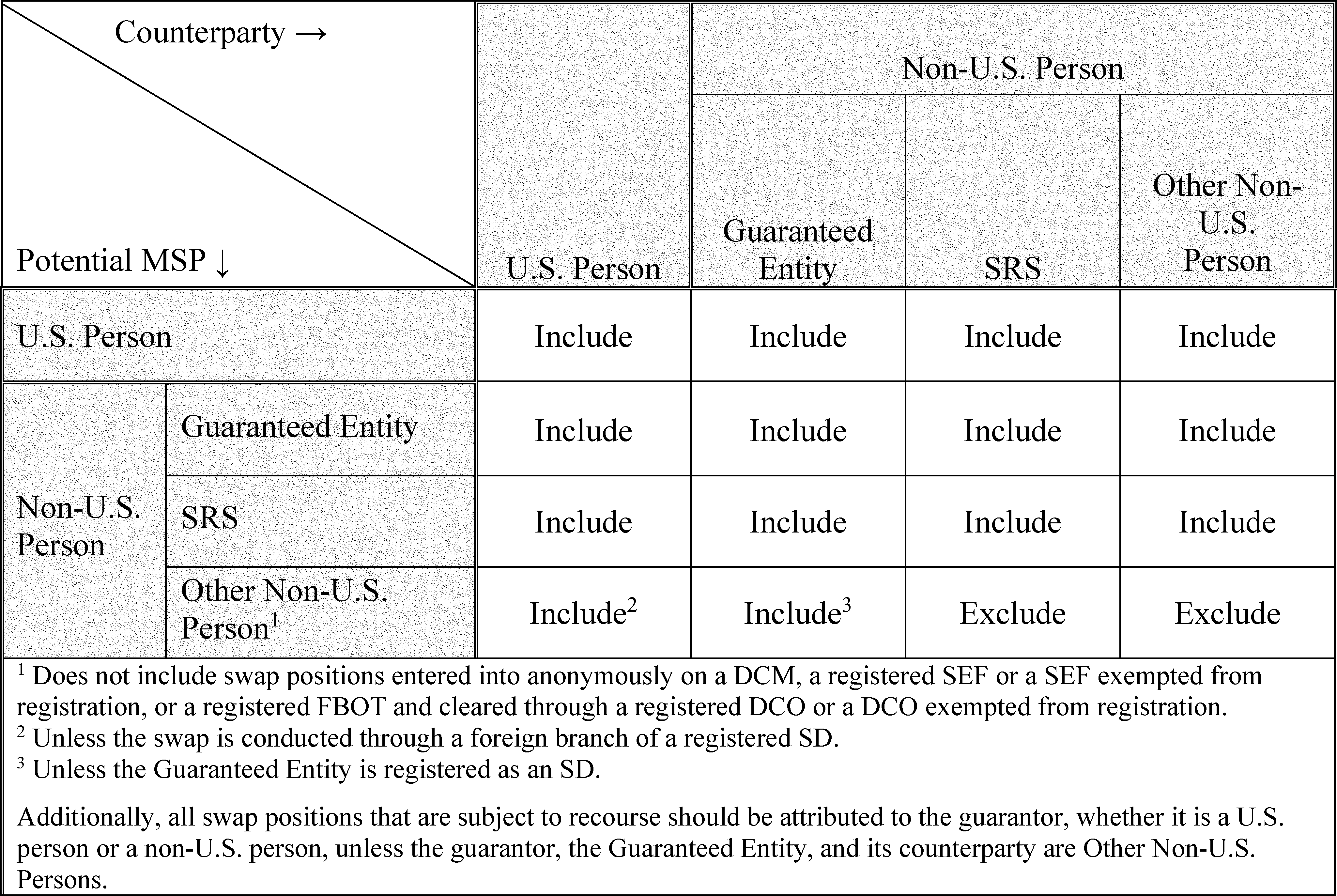 swap dealer registration calculation swaps entered into with an entity whose swap obligations are guaranteed by a U.S. person if the guaranteed entity is itself below the