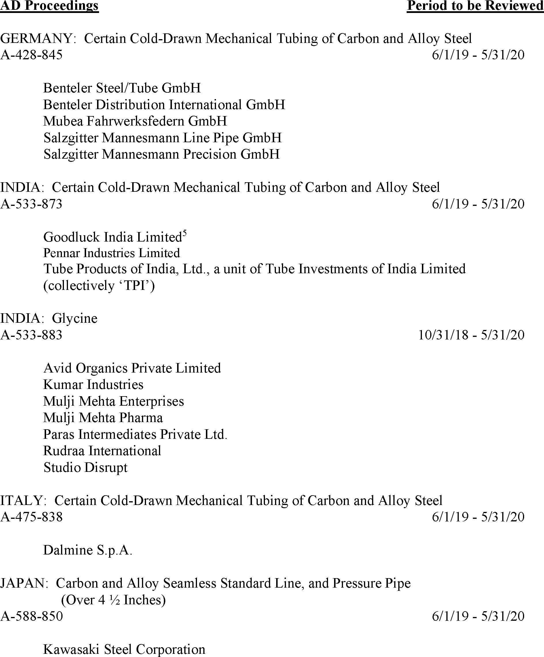 In accordance with 19 CFR 351.221(c)(1)(i), we are initiating administrative reviews of the following AD and CVD orders and findings. We intend to issue the final results of these reviews not later than June 30, 2021.