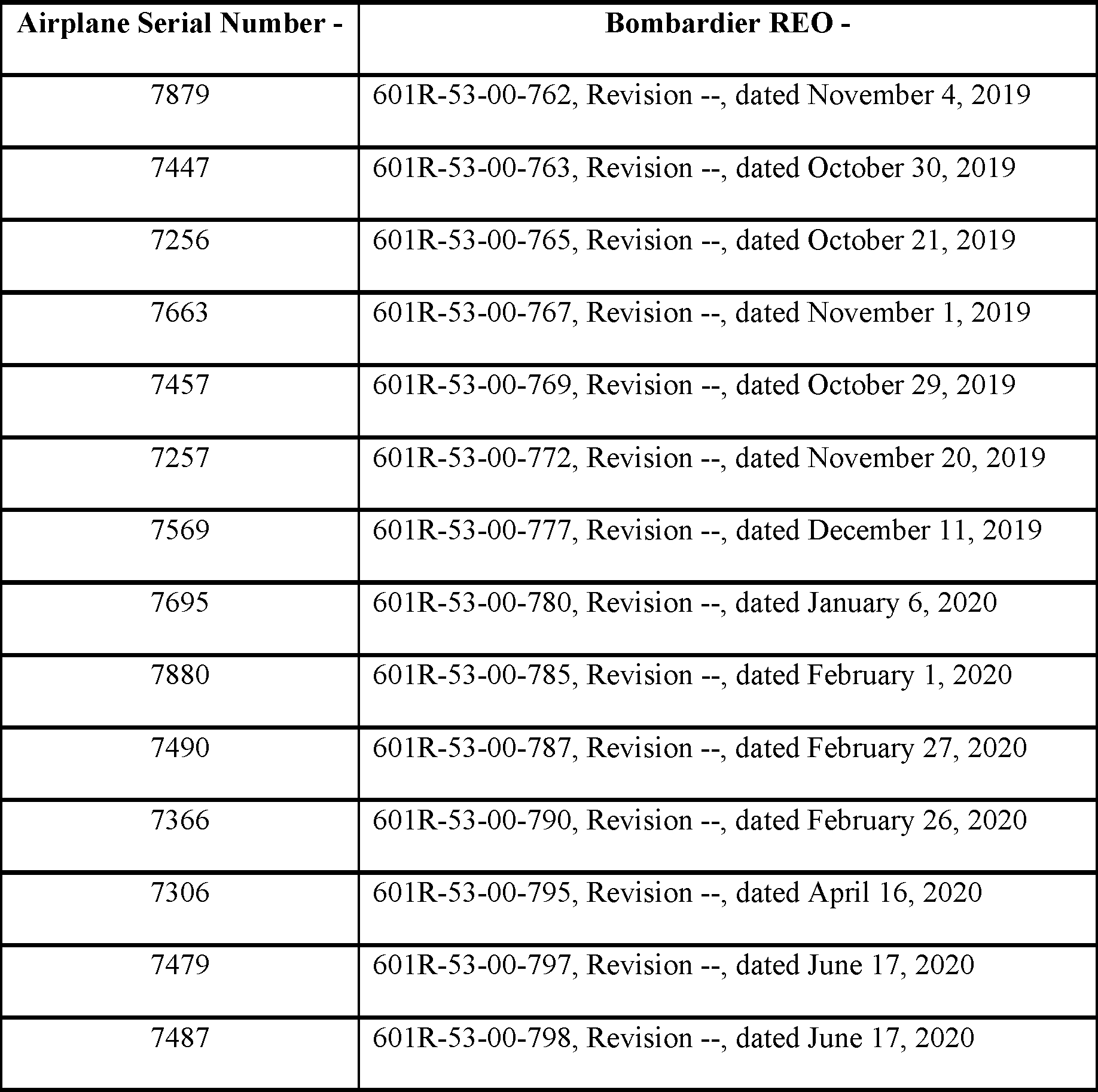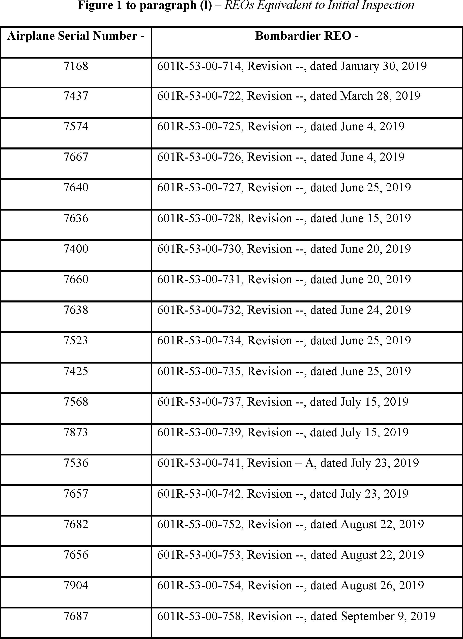 This paragraph provides credit for the initial inspections required by the service information specified in paragraph (j) of this AD, if those actions were performed before the effective date of this AD using the Bombardier Repair Engineering Orders (REOs) specified in Figure 1 to paragraph (l) of this AD.