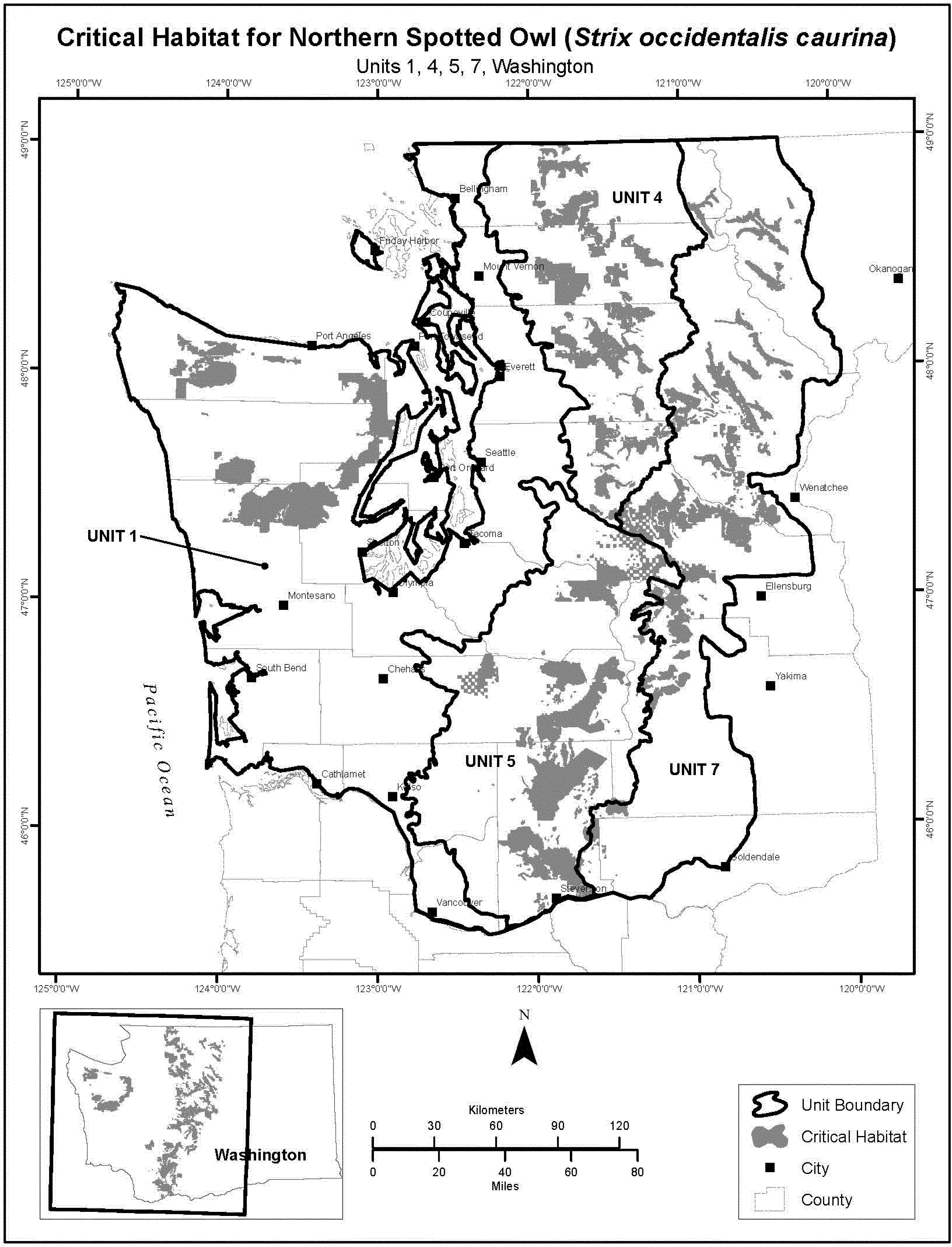 Index map of critical habitat units for the northern spotted owl in the State of Washington follows:
