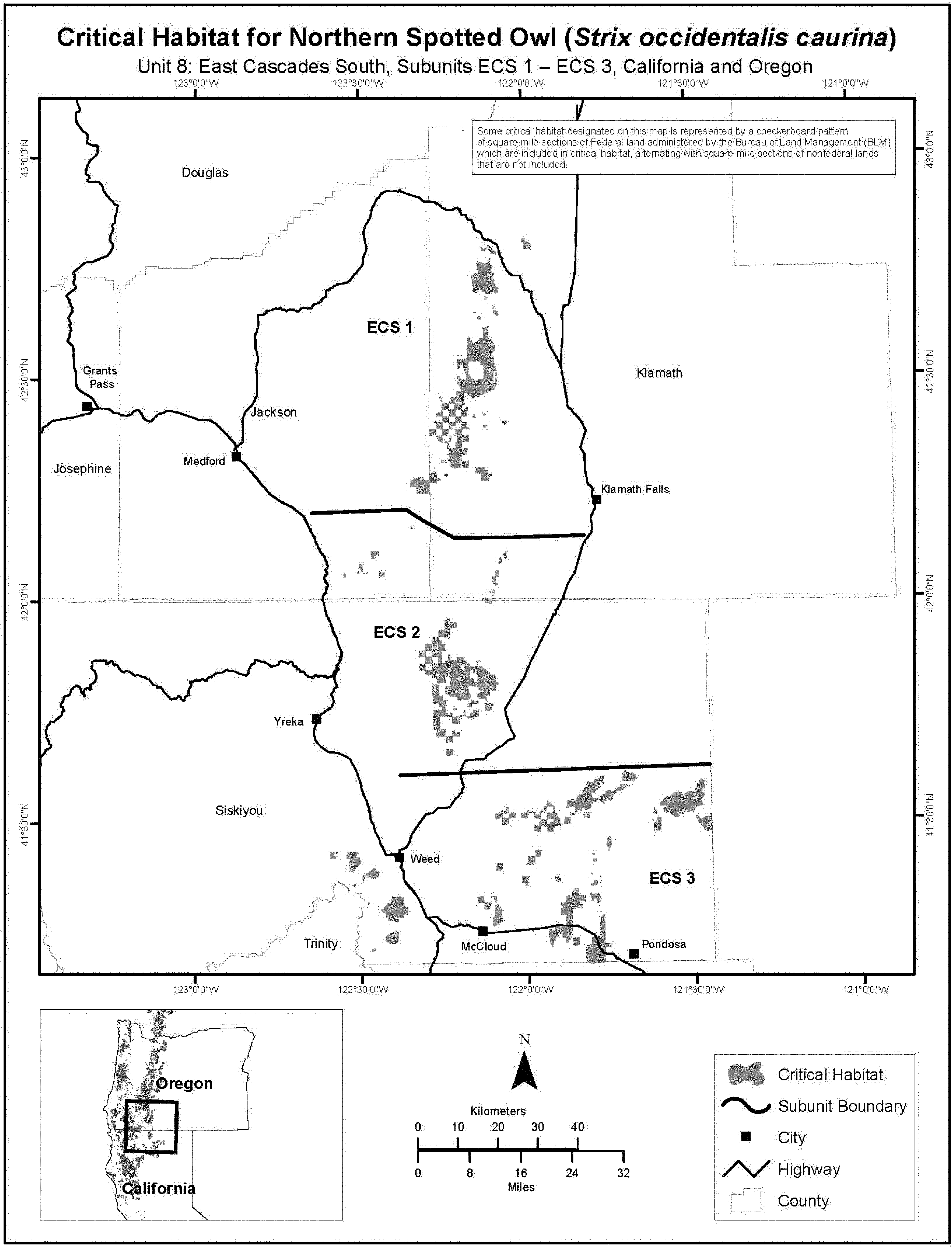(16) Unit 8: East Cascades South, California and Oregon. Map of Unit 8, East Cascades South, California and Oregon, follows: