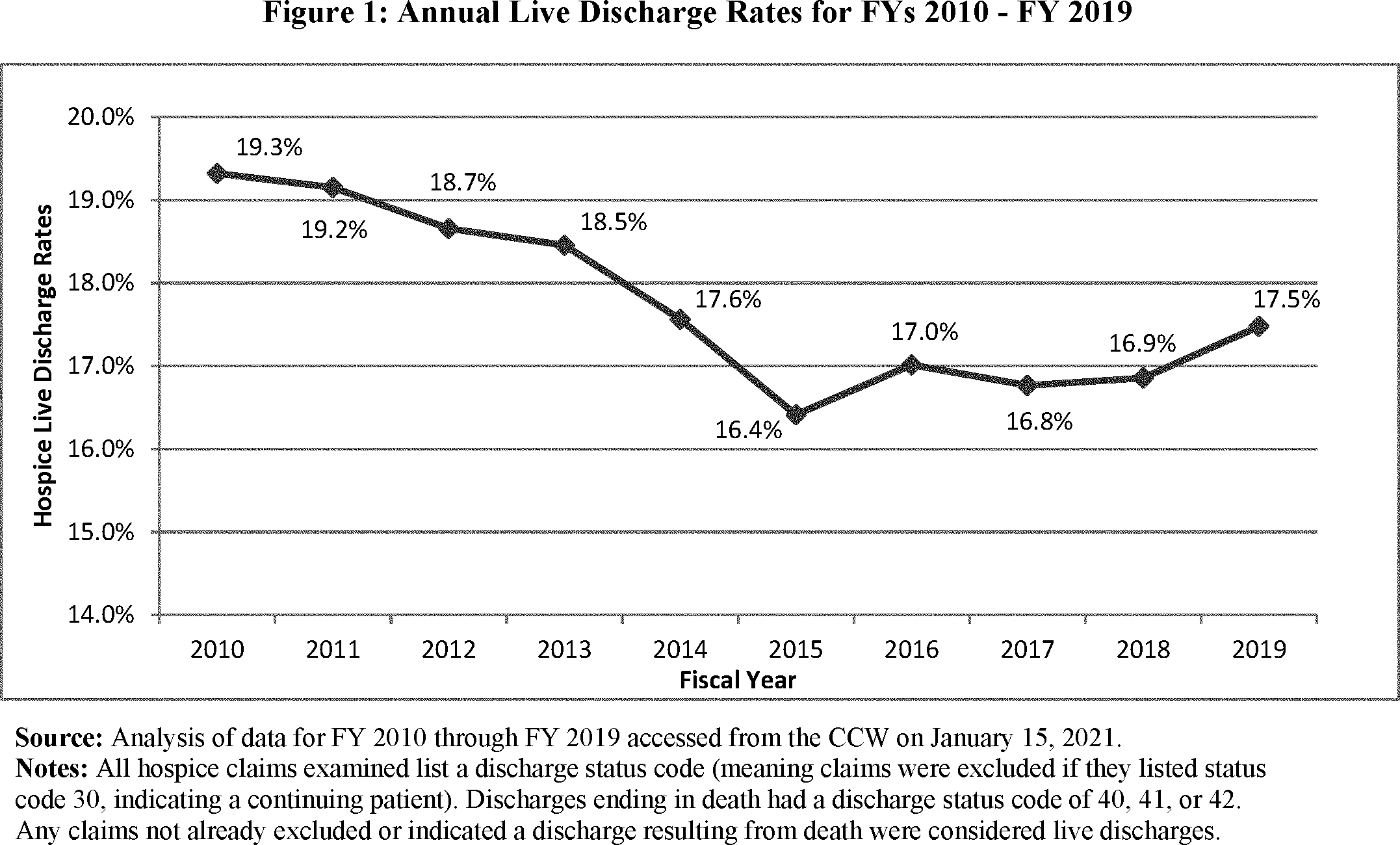 For example, see: Teno J.M., Bowman, J., Plotzke, M., Gozalo, P.L., Christian, T., Miller, S.C., Williams, C., & Mor, V. (2015). Characteristics of hospice programs with problematic live discharges. Journal of Pain and Symptom Management, 50, 548-552. doi: 10.1016/j.jpainsymman.2015.05.001.