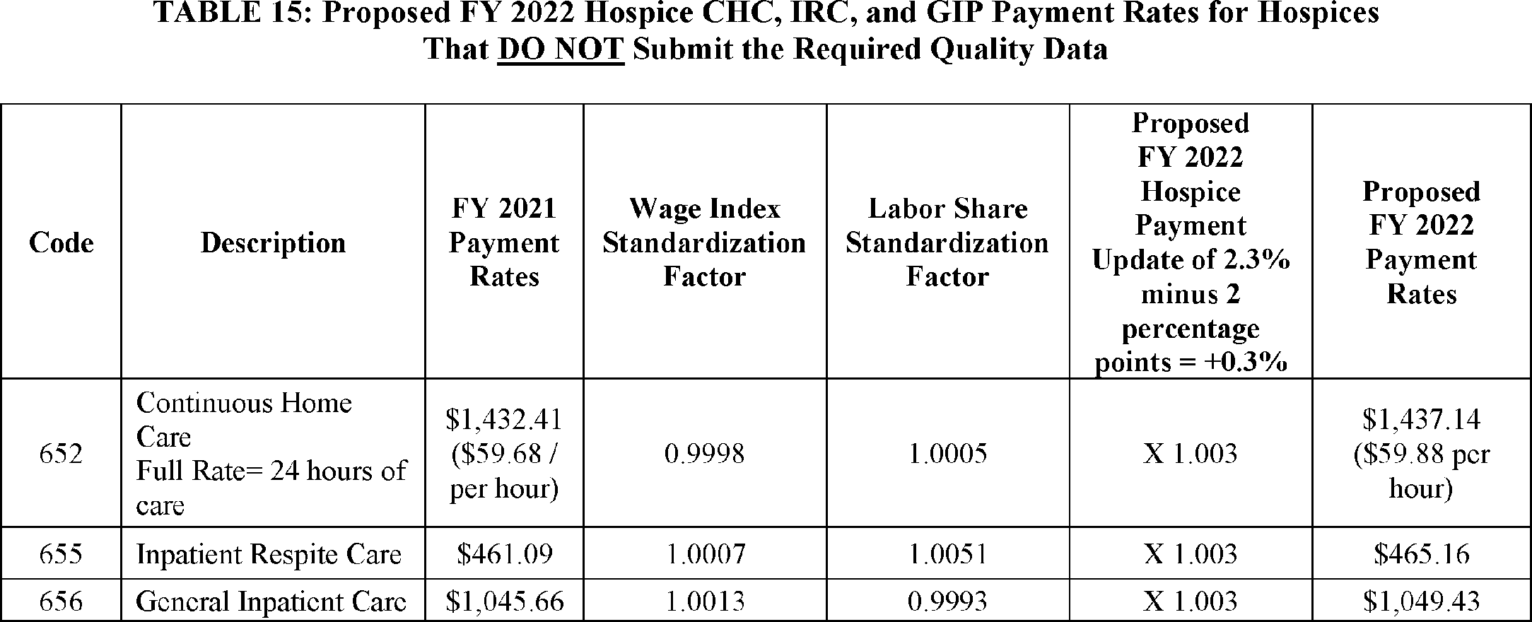 “Medicare Program; FY 2022 Hospice Wage Index and Payment Rate Update, Hospice Conditions of Participation Updates, Hospice and Home Health Quality Reporting Program Requirements,” thefederalregister.org (April 14, 2021), https://thefederalregister.org/documents/2021-07344/medicare-program-fy-2022-hospice-wage-index-and-payment-rate-update-hospice-conditions-of-participation-updates-hospice-.