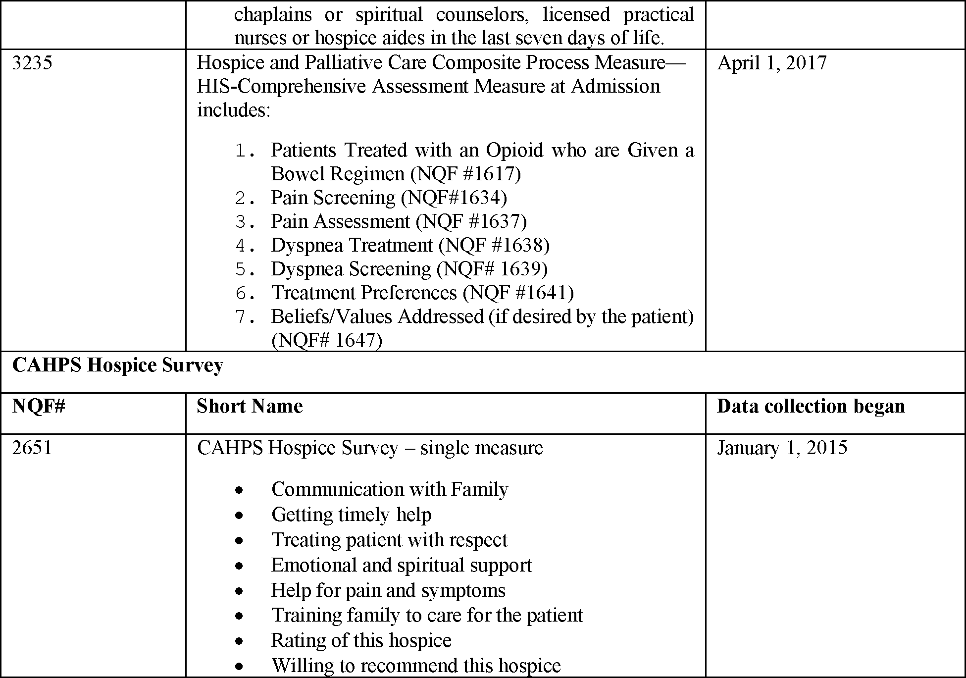 In addition, the FY 2015 Hospice Wage Index and Rate Update final rule (79 FR 50496) provided background, described eligibility criteria, identified survey respondents, and otherwise implemented the Hospice Experience of Care Survey for informal caregivers. Hospice providers were required to begin using this survey for hospice patients as of 2015.