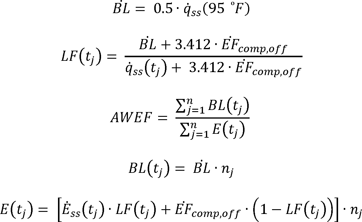 3.3.6. AWEF is calculated on the basis that walk-in box load is equal to half of the system net capacity, without variation according to high and low load periods and without variation with outdoor air temperature for outdoor refrigeration systems, and the test must be done as a matched or single-package refrigeration system, as follows: