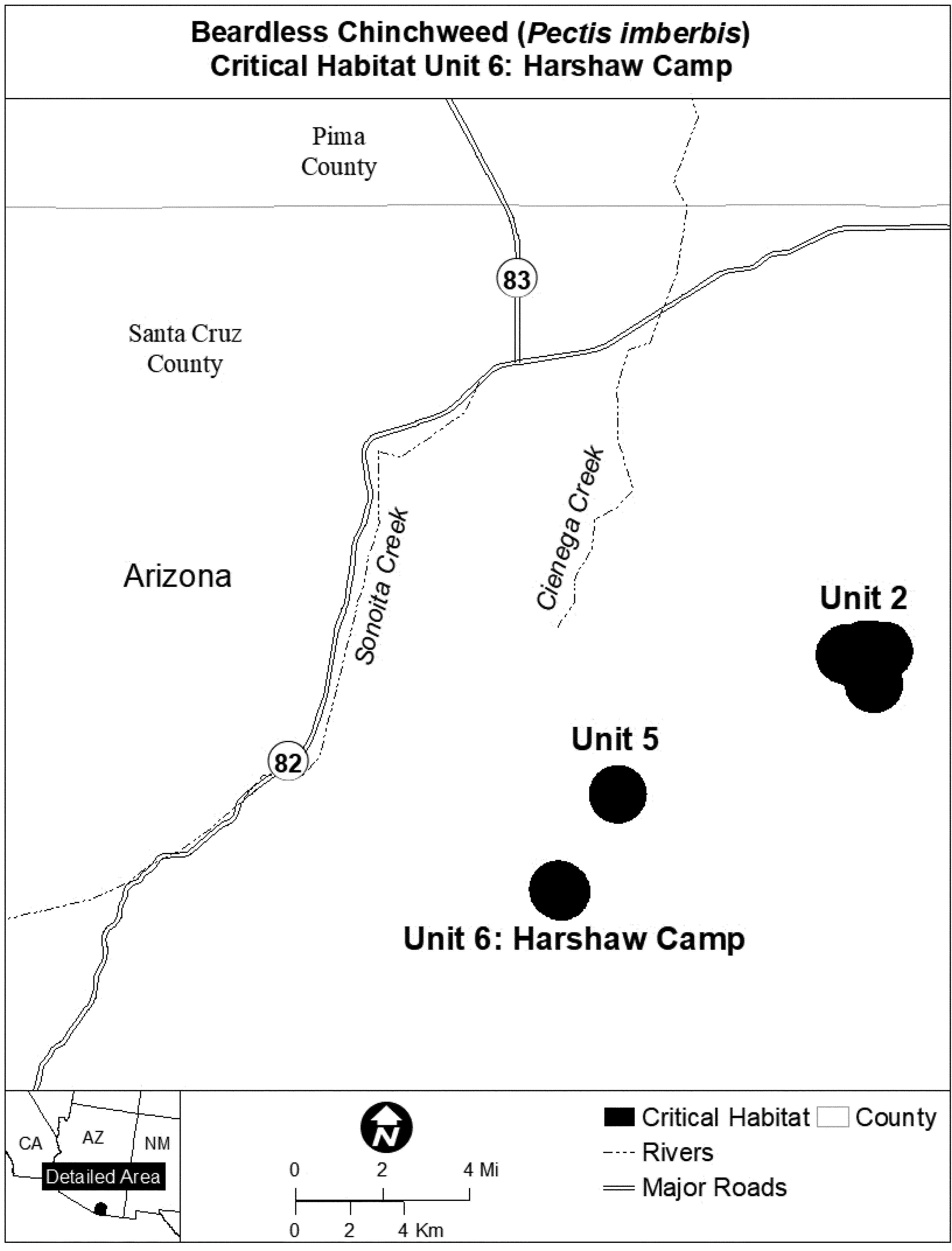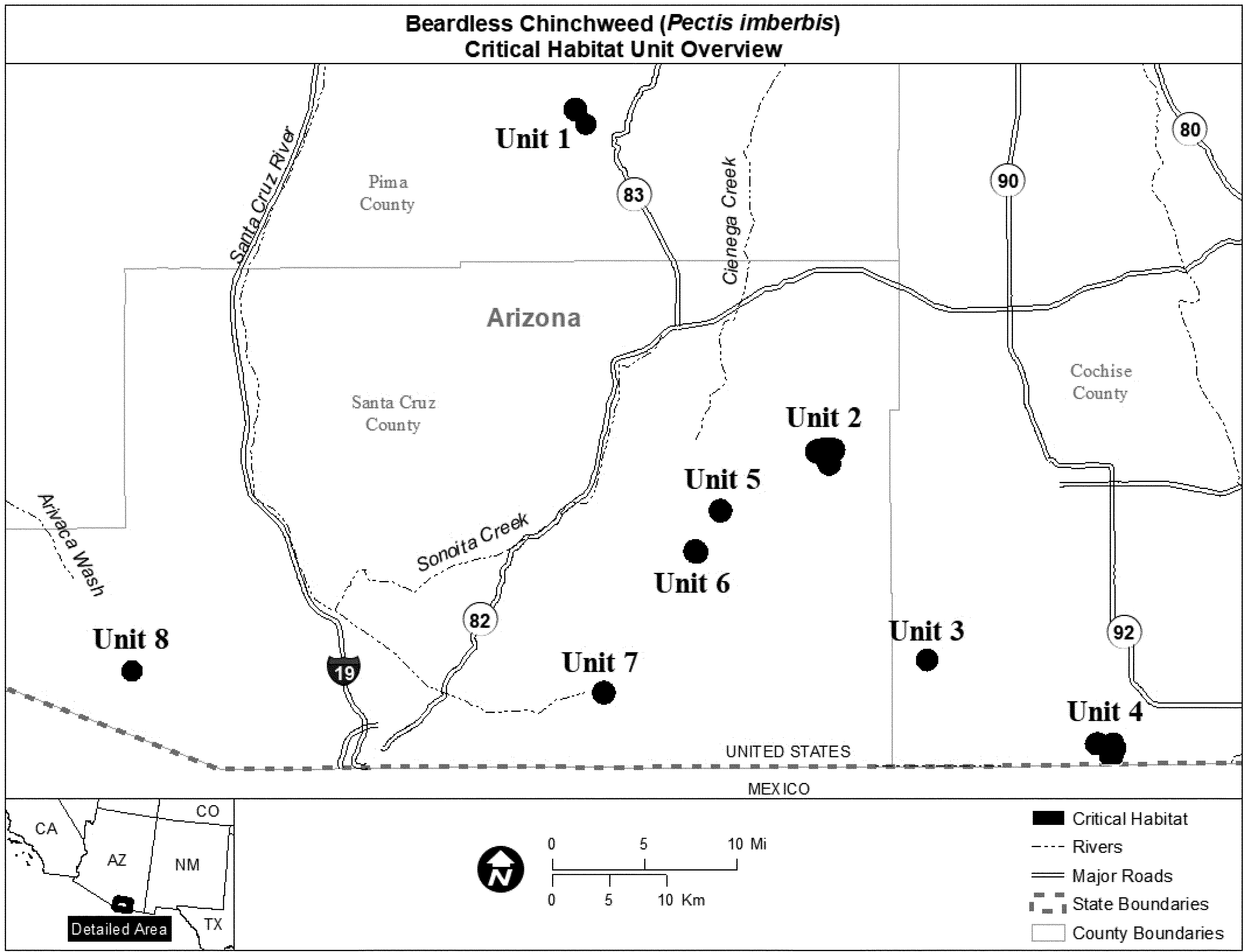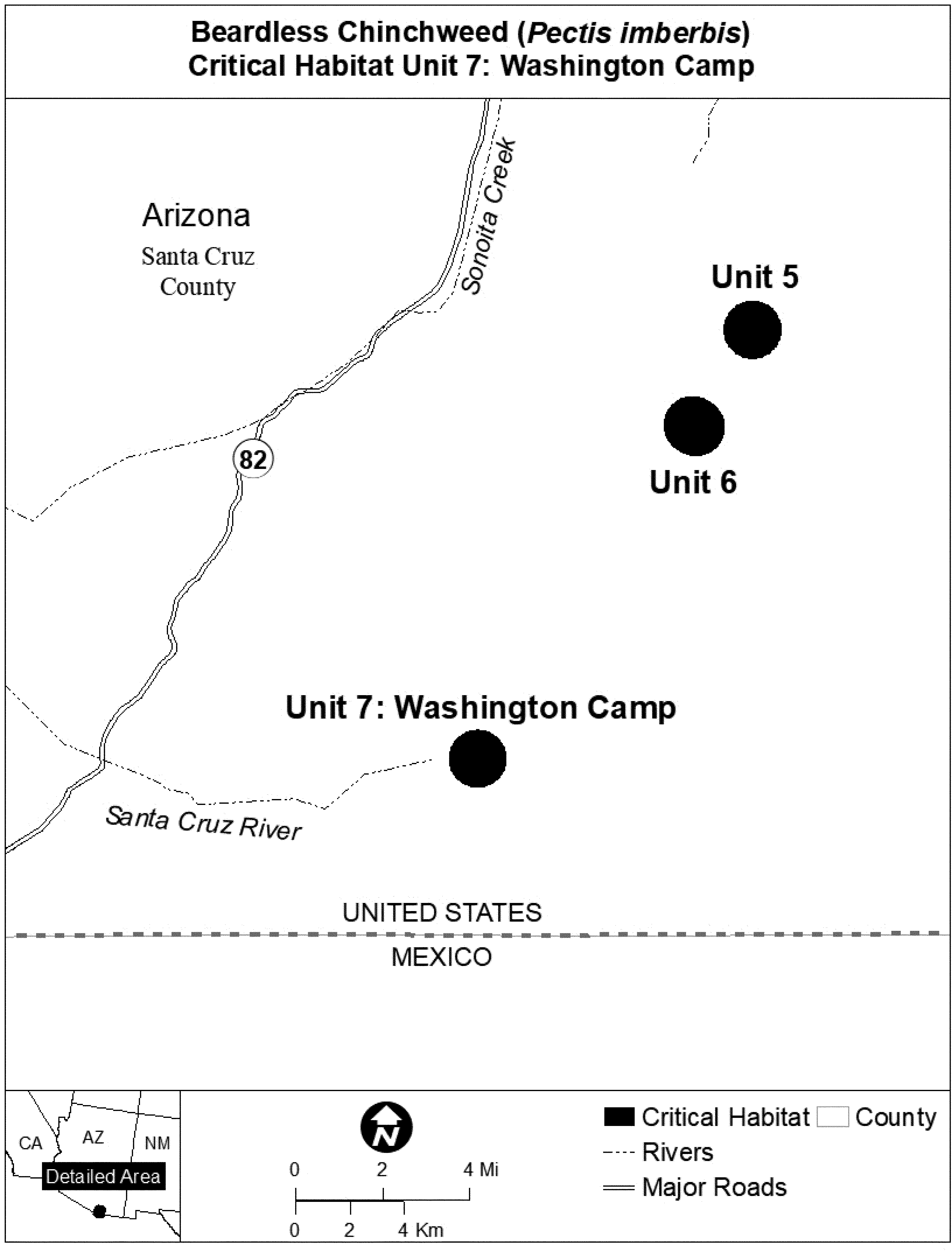 Response: Historical distributions of beardless chinchweed are focused in southern Arizona, with some disjunct populations in northern Mexico. There have been surveys for this species in Mexico, and numerous biologists from Mexico have been consulted regarding its presence in the country. Habitat has been altered extensively in Mexico, and no populations of the beardless chinchweed have been located there; therefore, we do not find the species to be common or safe in Mexico.