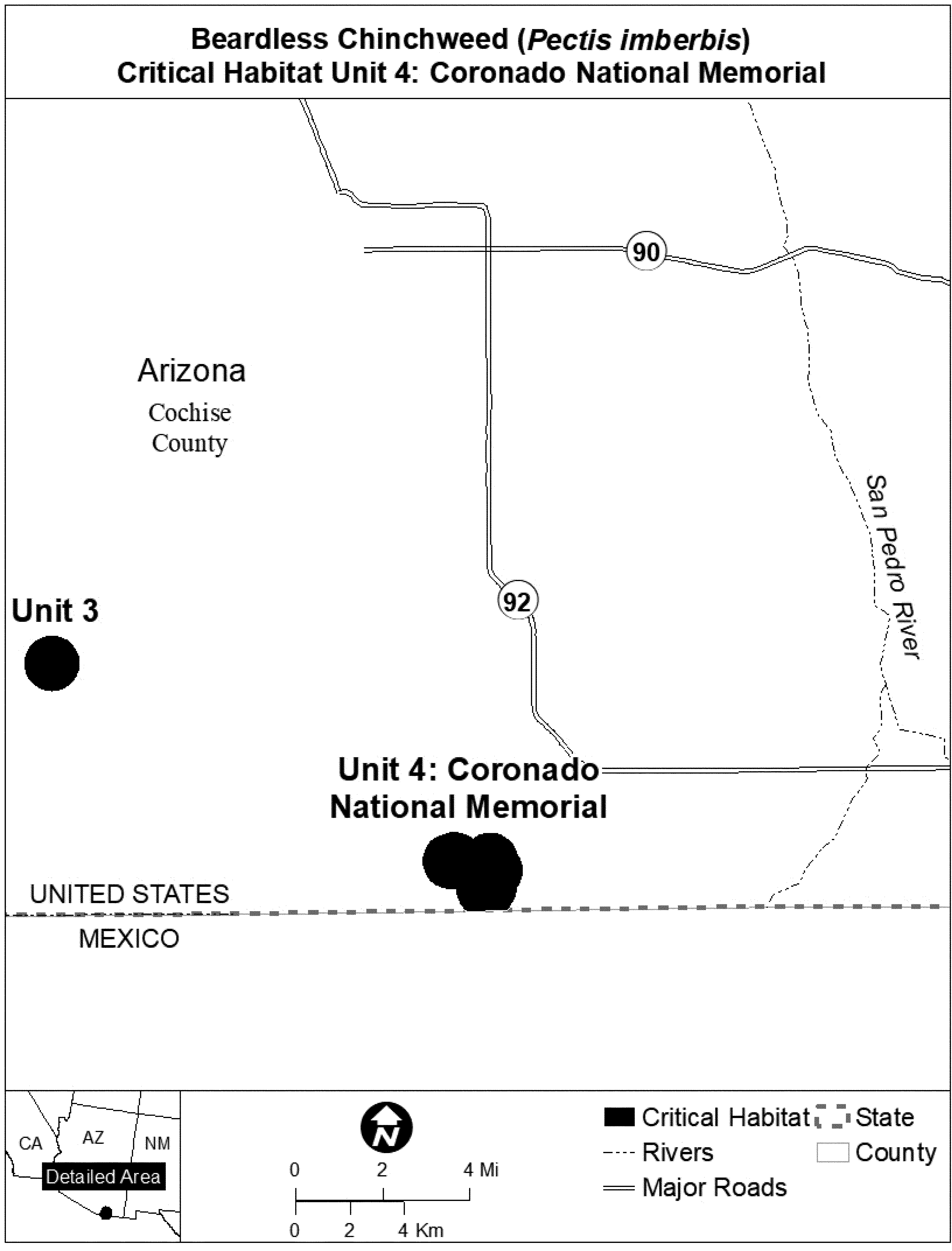 No lands within the designation of critical habitat for beardless chinchweed are owned or managed by the DoD. The U.S. Customs and Border Protection (Department of Homeland Security) conducts border security operations and enforcement activities within and outside the 60-foot Roosevelt Reservation along the United States/Mexico border (Unit 4).