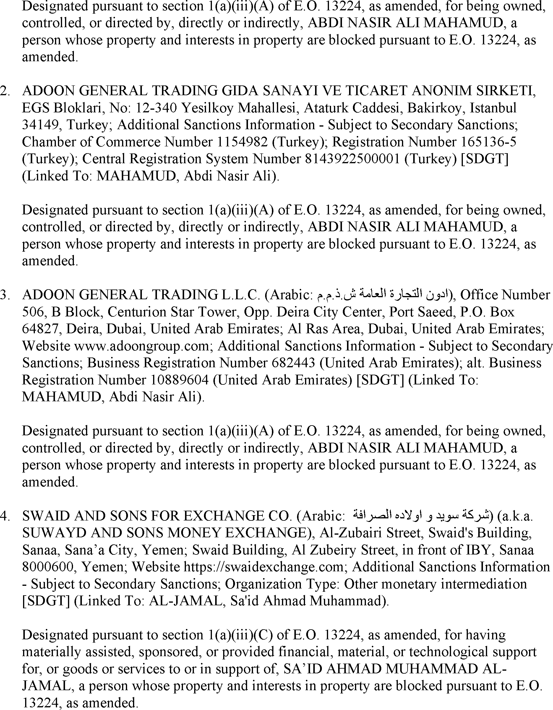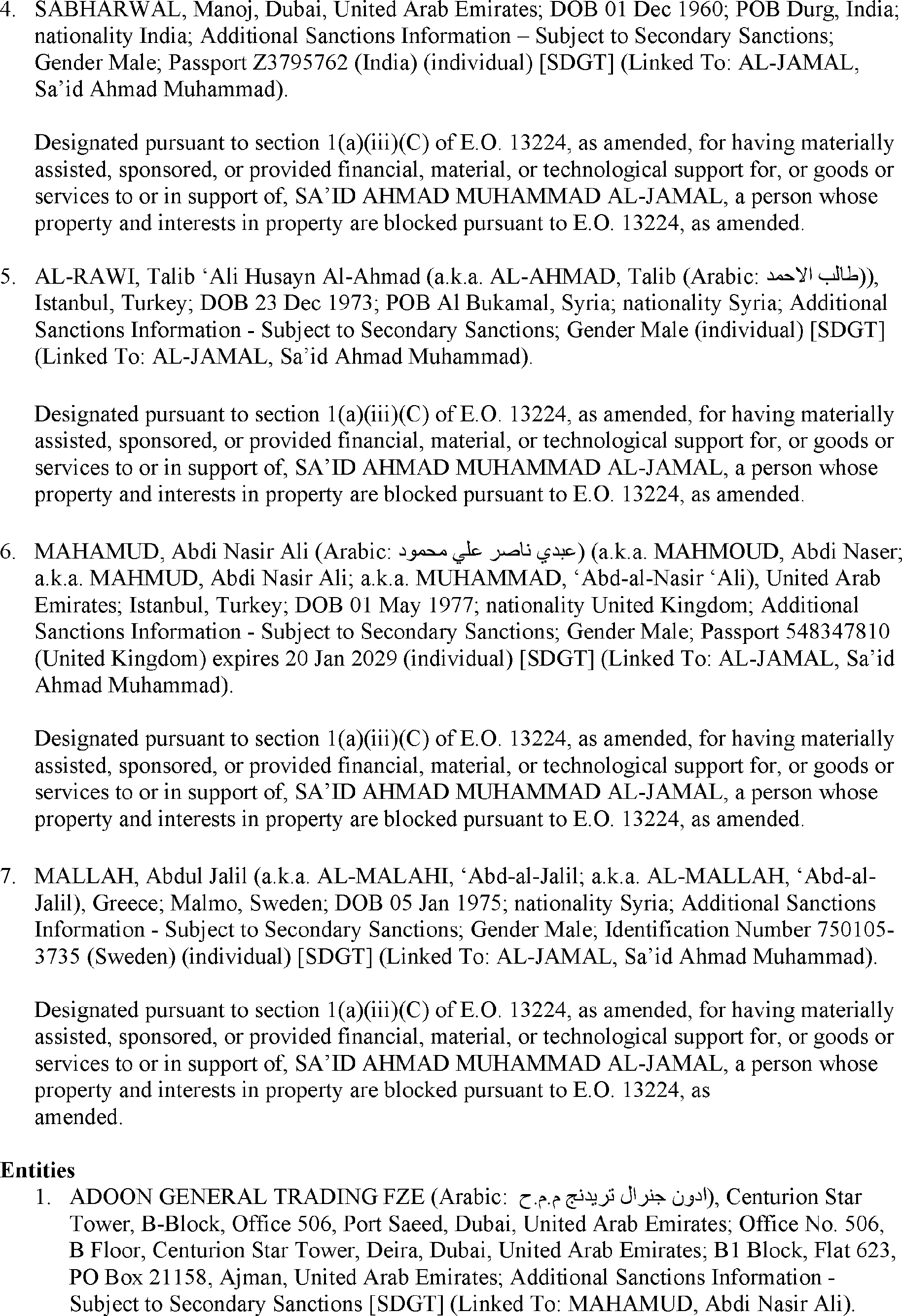 The U.S. Department of the Treasury's Office of Foreign Assets Control (OFAC) is publishing the names of one or more persons and vessel that have been placed on OFAC's Specially Designated Nationals and Blocked Persons List (SDN List) based on OFAC's determination that one or more applicable legal criteria were satisfied. All property and interests in property subject to U.S. jurisdiction of these persons are blocked, and U.S. persons are generally prohibited from engaging in transactions with them. The vessel placed on the SDN List has been identified as property in which a blocked person has an interest.