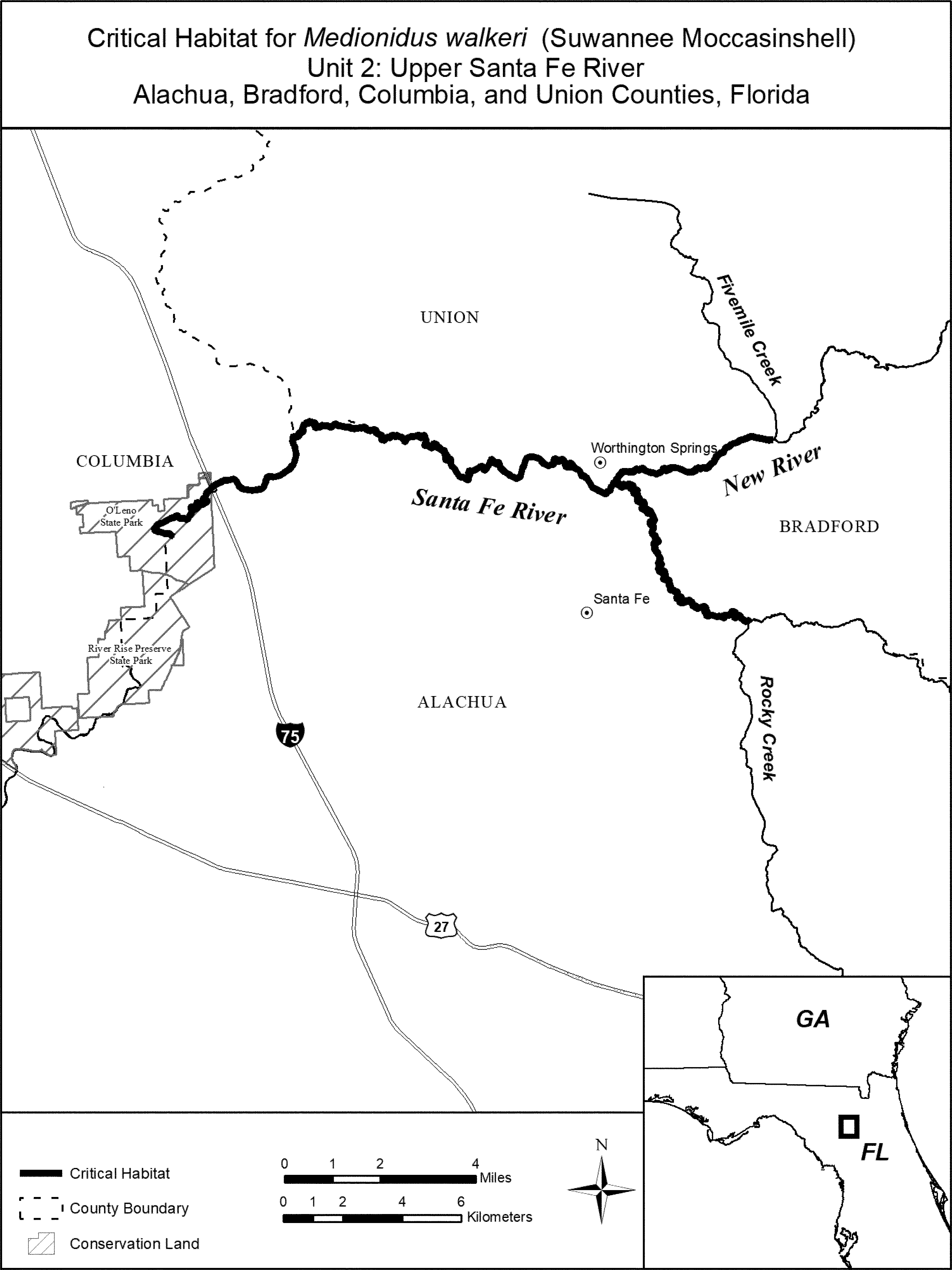 (7) Unit 2: Upper Santa Fe River in Alachua, Bradford, Columbia, and Union, Counties, Florida.