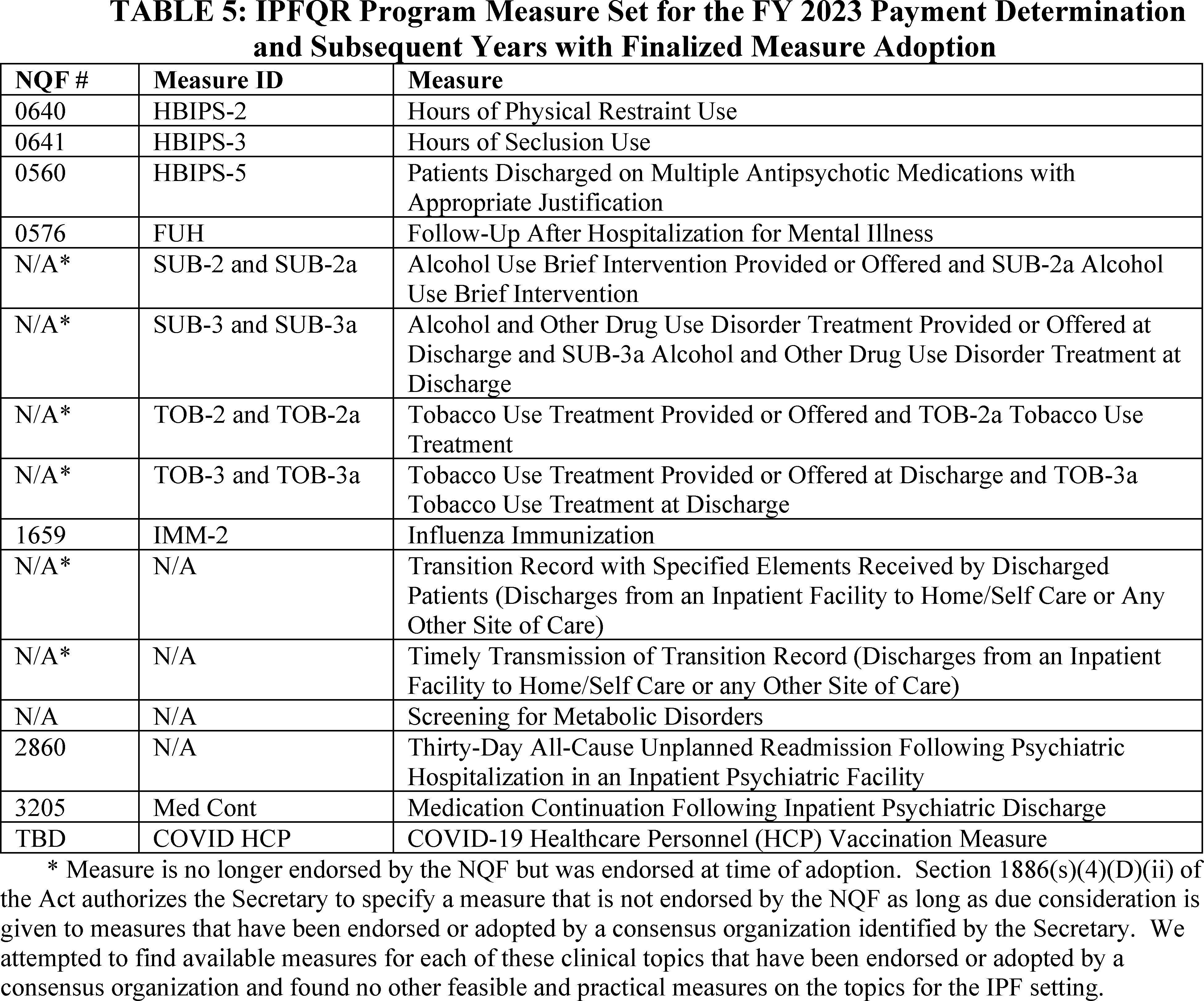 Adopting the Coronavirus disease 2019 (COVID-19) Vaccination Coverage Among Health Care Personnel (HCP) measure for the FY 2023 payment determination and subsequent years;