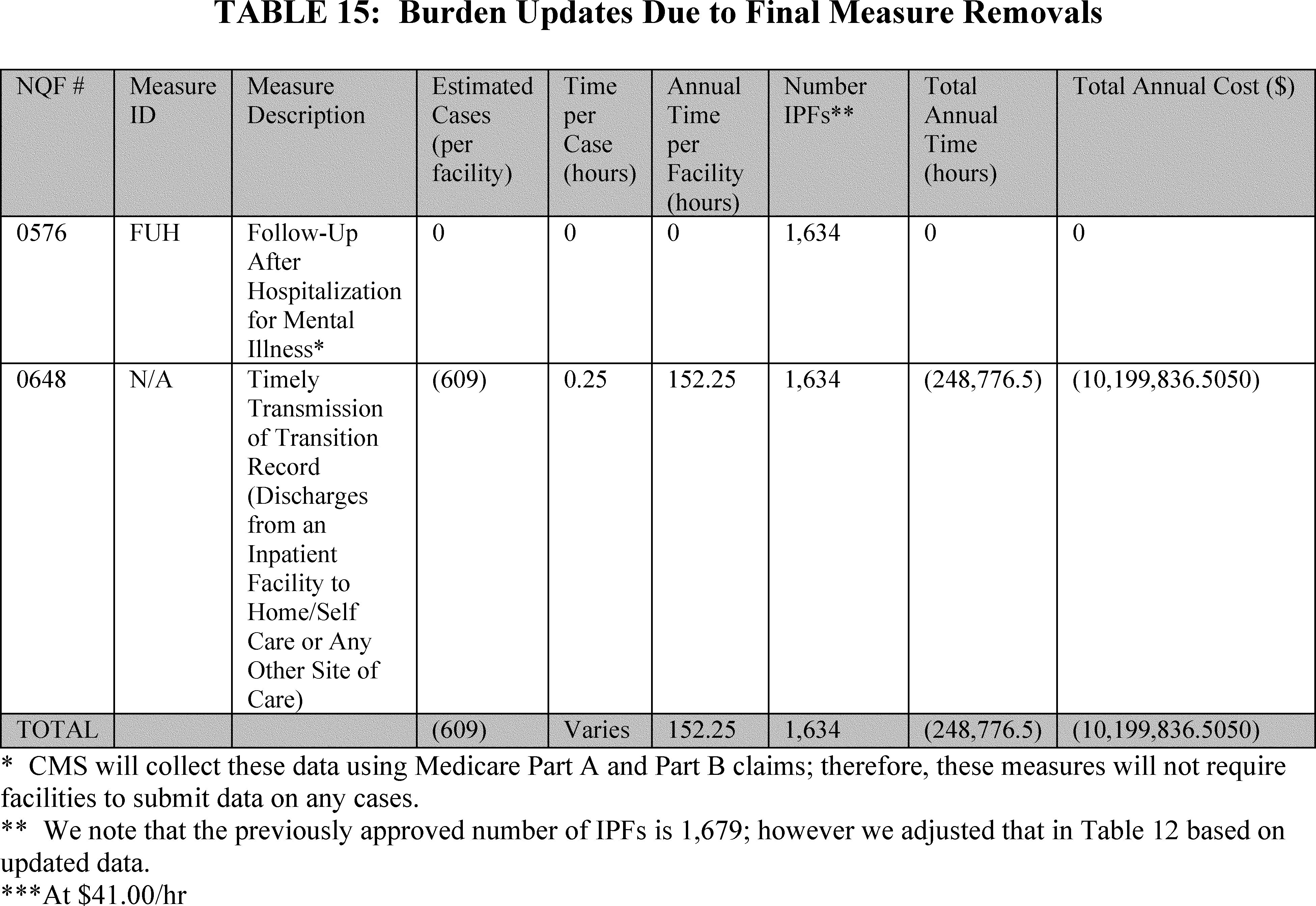 Not finalizing our proposals to remove the following two measures for