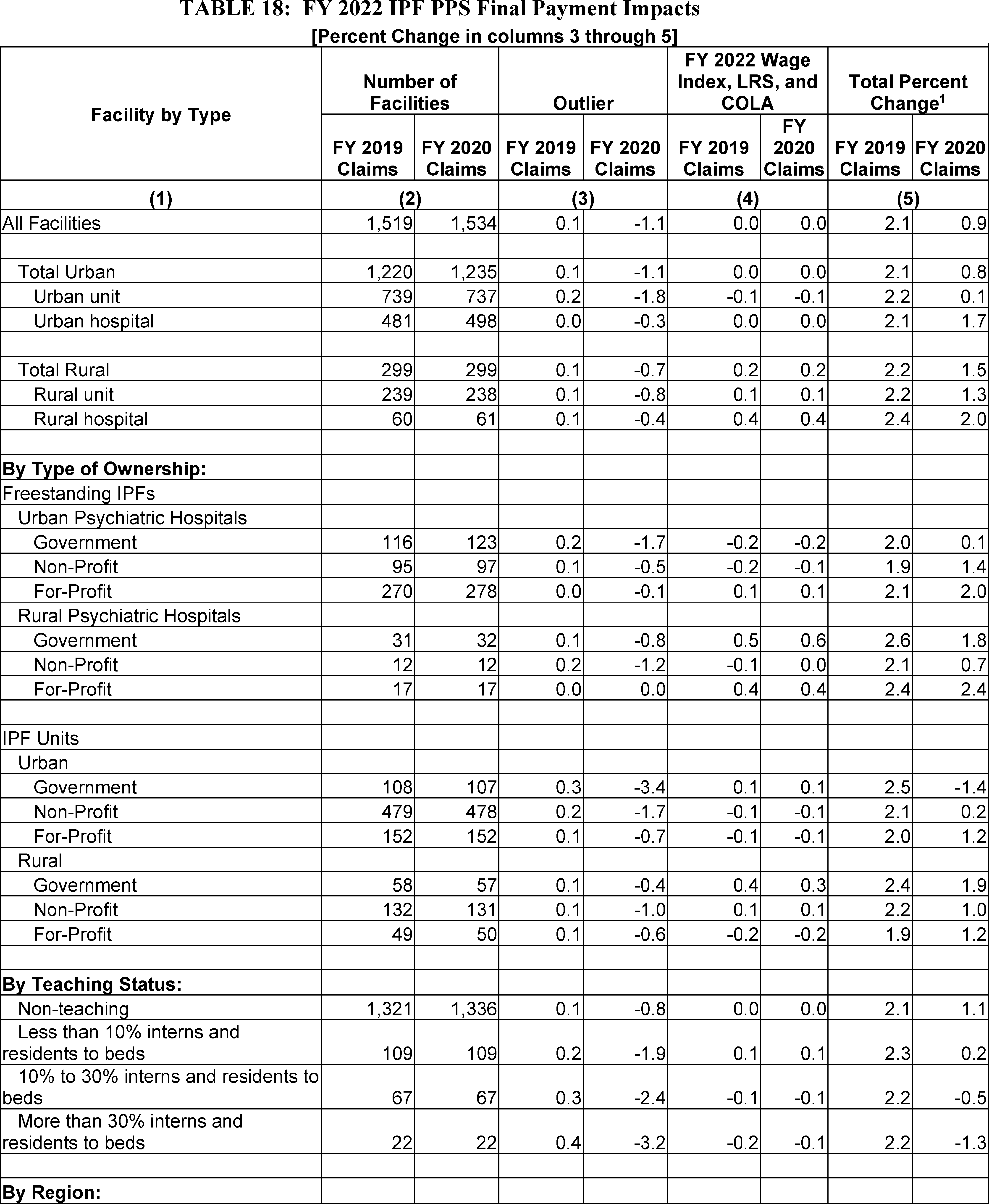 Response: We understand the commenter's concern. We acknowledge that the COVID-19 PHE has amplified the growing need for behavioral health services in this country and remain committed to trying to find ways to mitigate its impact on IPFs. Our goal is to ensure that the IPF payment rates accurately reflect the best available data. For example, as discussed in section VI.C.3 of this final rule, in comparing and analyzing FY 2019 and FY 2020 claims, we determined that the COVID-19 PHE appears to have significantly impacted the FY 2020 IPF claims such that the FY 2019 claims are the best available data to set the outlier fixed dollar loss threshold for FY 2022. Therefore, we deviated from our longstanding practice of using the most recent available year of claims, that is, FY 2020 claims, for estimating IPF PPS payments in FY 2022. We will continue to analyze more recent available IPF claims data to better understand both the short- and long-term effects of the COVID-19 PHE on the IPF PPS.