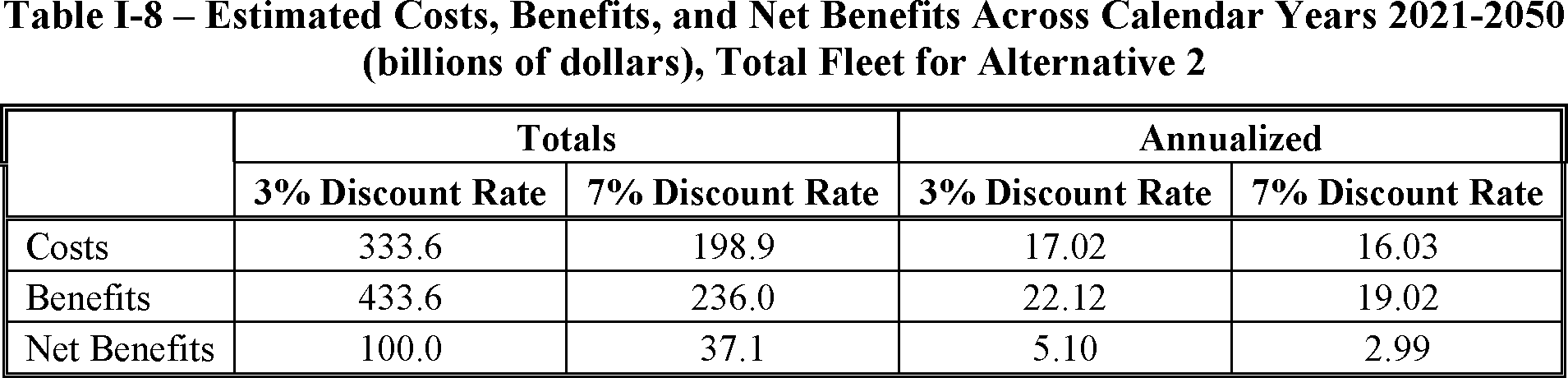 Our analysis also considers a “calendar year” (CY) perspective that includes the annual impacts attributable to all vehicles estimated to be in service in each calendar year for which our analysis includes a representation of the entire registered light-duty fleet. For this NPRM, this calendar year perspective covers each of calendar years 2021-2050, with differential impacts accruing as early as model year 2023. Compared to the “model year” perspective, this calendar year perspective emphasizes model years of vehicles produced in the longer term, beyond those model years for which standards are currently being proposed. Table I-3 summarizes estimates of selected physical impacts viewed from each of these two perspectives, as well as corresponding estimates of the present values of cumulative benefits, costs, and net benefits.