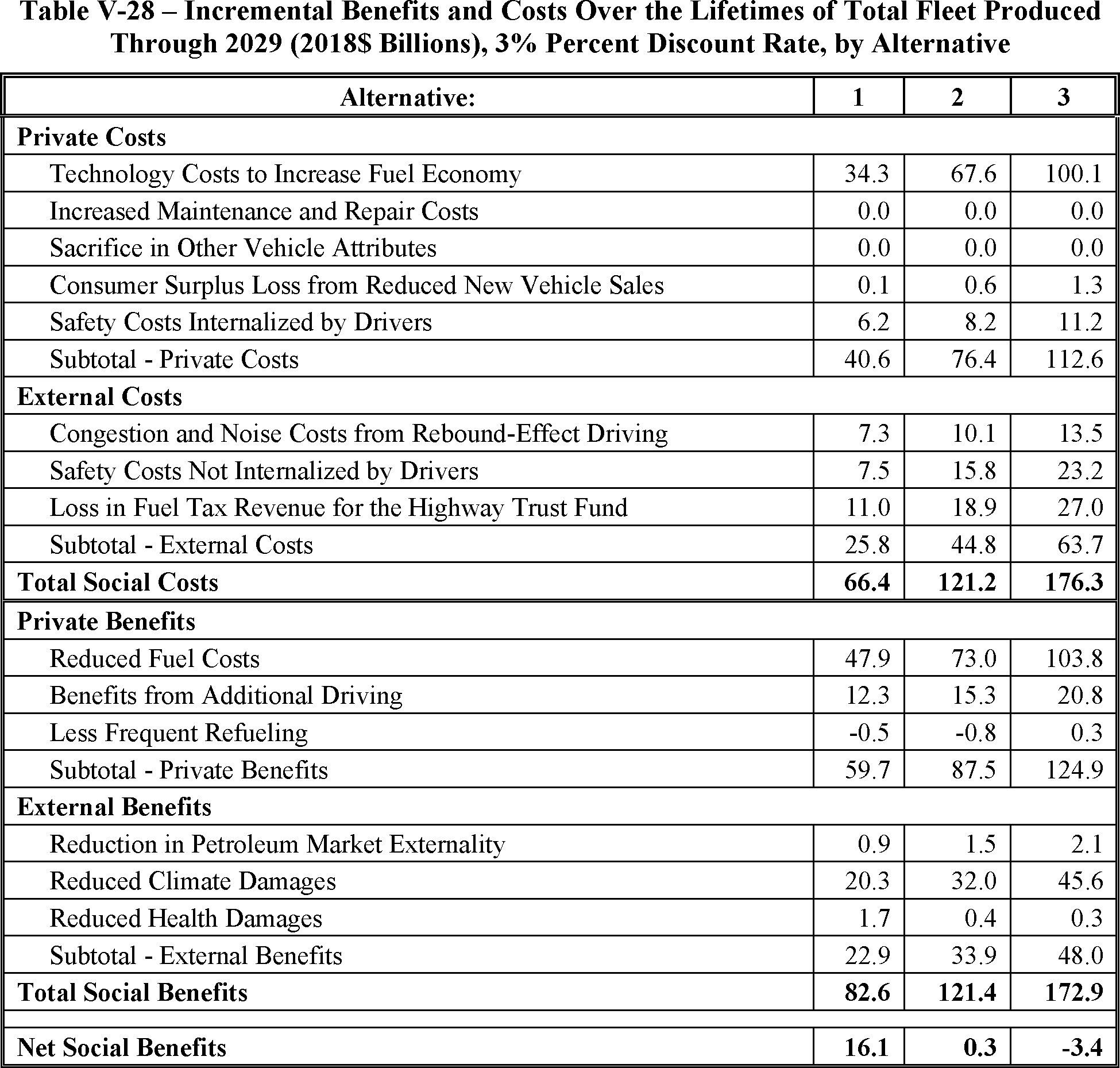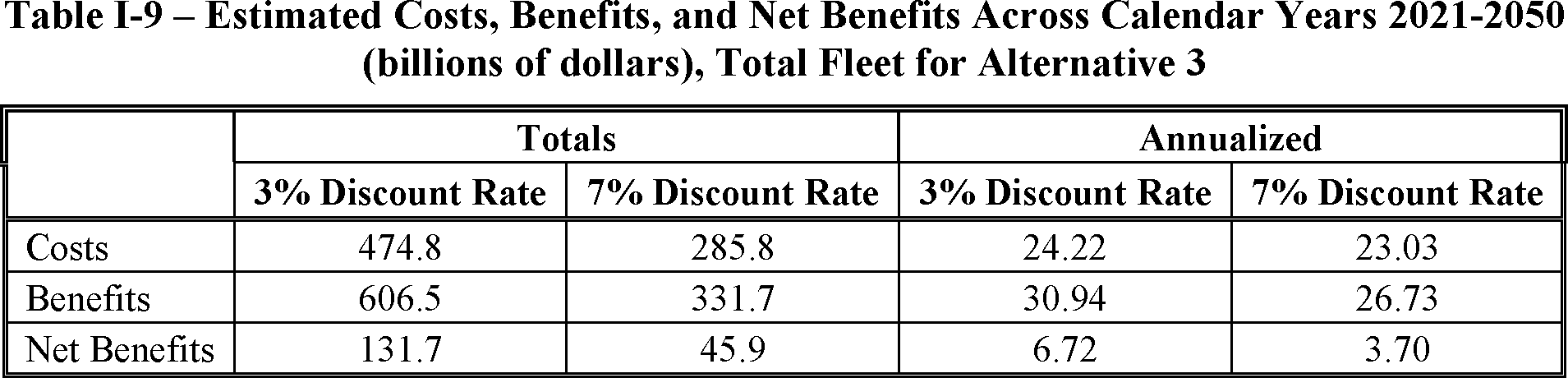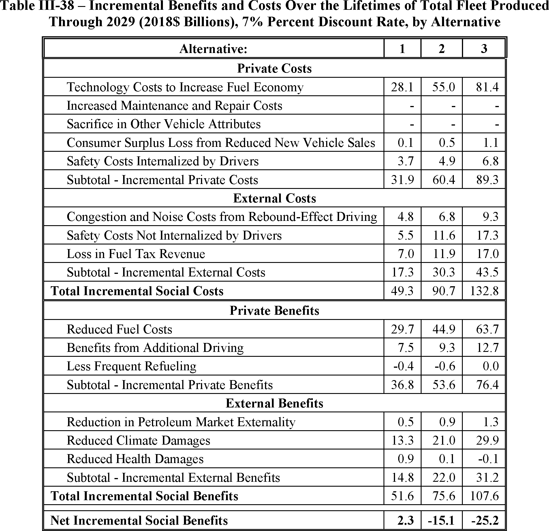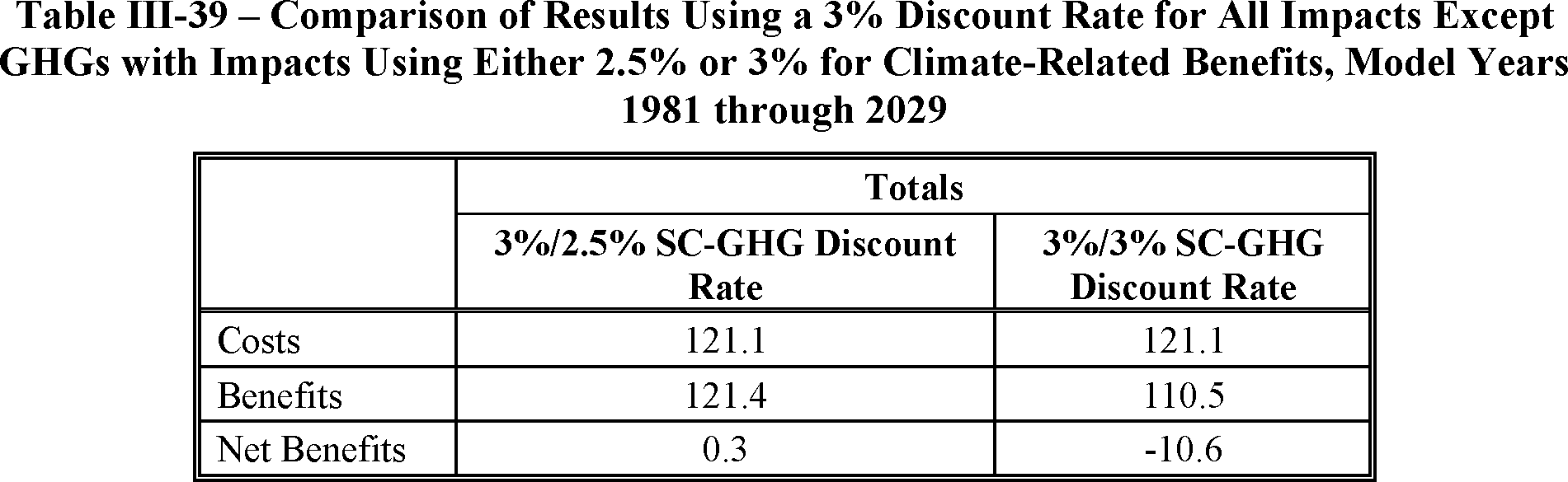 billion in benefits attributable to the proposed standards, such that the present value of aggregate net benefits to society could be $1 billion. Like any analysis of this magnitude attempting to forecast future effects of current policies, significant uncertainty exists about many key inputs. Changes in the price of fuel or in the social cost of carbon could dramatically change benefits, for example, and readers should expect that the eventual final rule will reflect any updates made to those (and many other) values that occur between now and then. It is also worth stressing that NHTSA's statutory authority requires that its standards be maximum feasible, taking into account four statutory factors. While NHTSA's estimates of costs and benefits are important considerations, it is the maximum feasible analysis that controls the setting of CAFE standards.