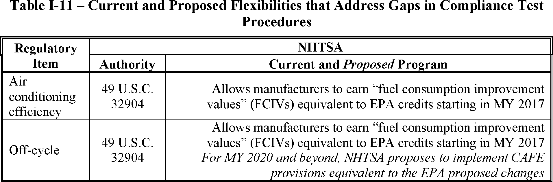 Consistent with applicable law, NHTSA established provisions starting in MY 2017 allowing manufacturers to increase compliance performance based on fuel consumption benefits gained by technologies not accounted for during normal 2-cycle EPA compliance testing (called “off-cycle technologies” for technologies such as stop-start systems) as well as for A/C systems with improved efficiencies and for hybrid or electric full-size pickup trucks.