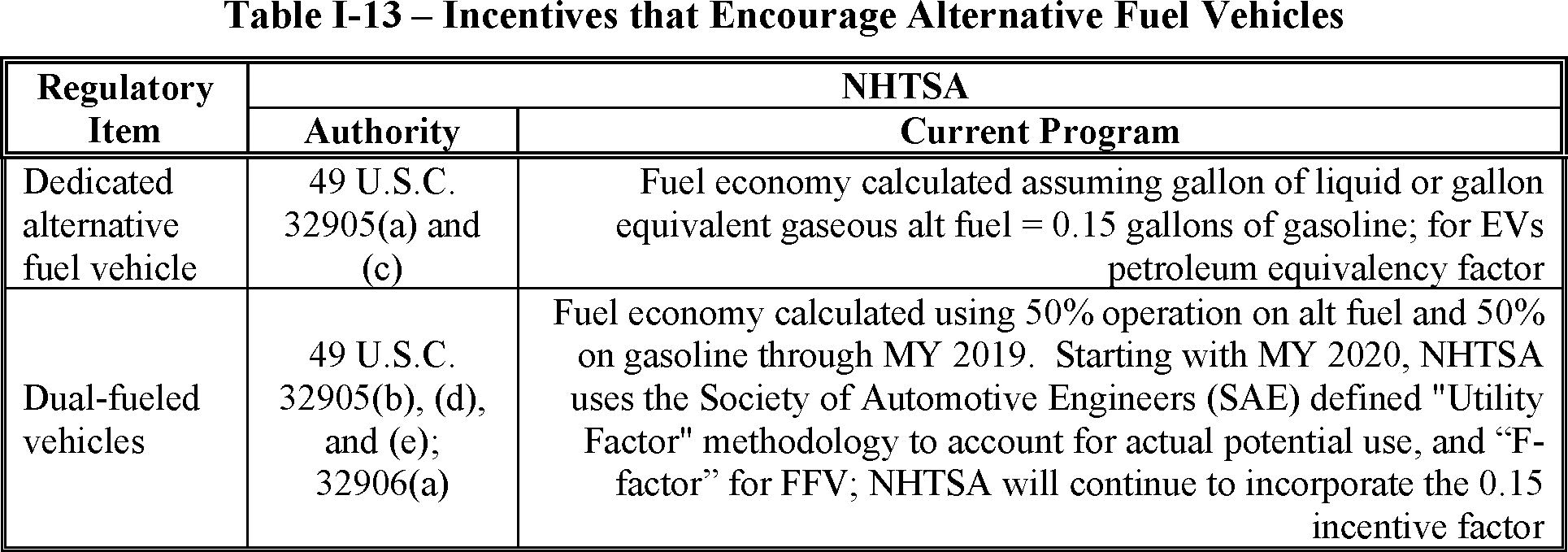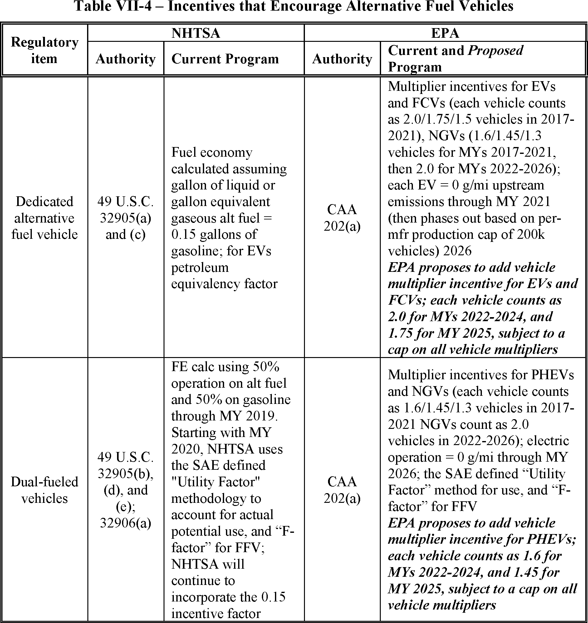 adjustment of alternative fuel vehicle fuel economy). NHTSA flexibilities and incentives are discussed further in Section VII.B.3.a).