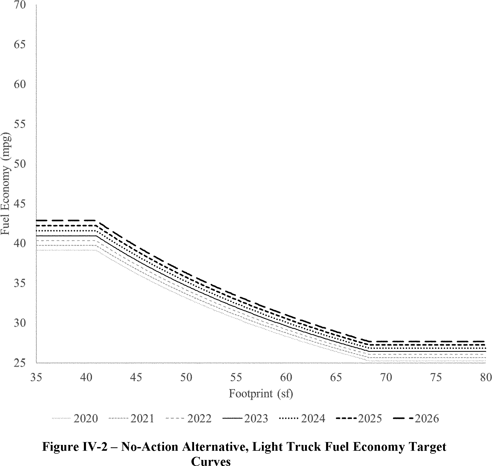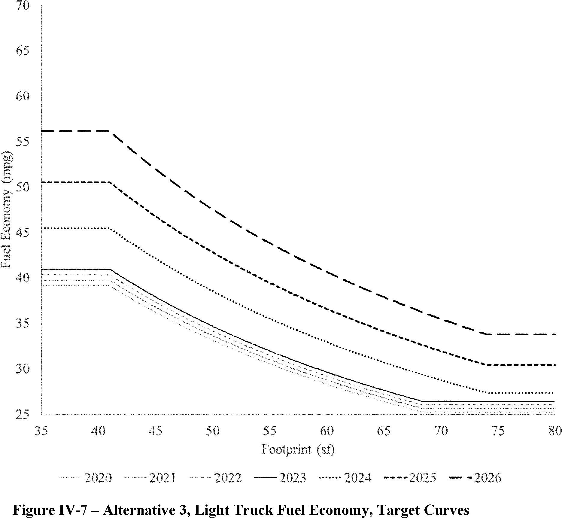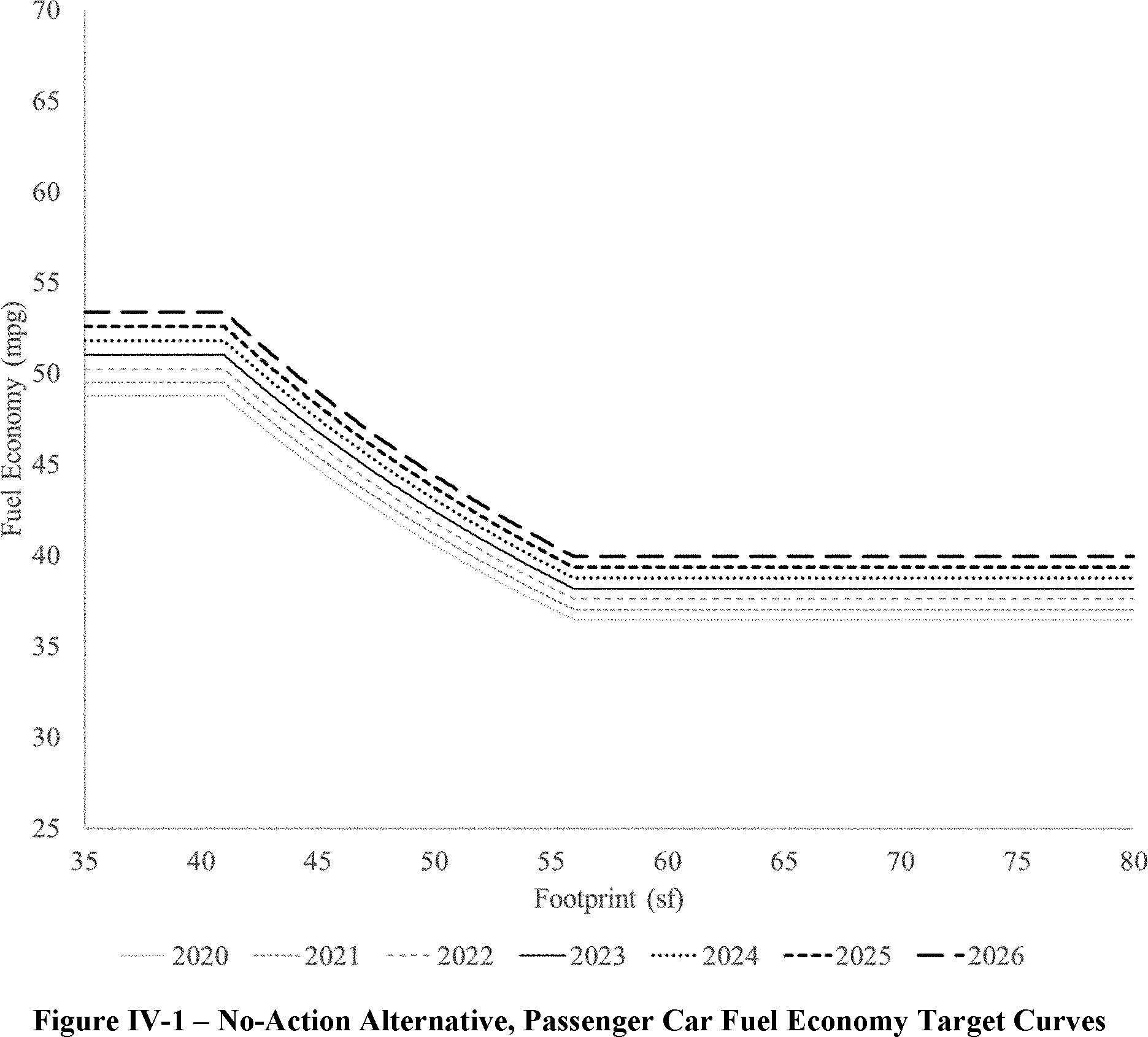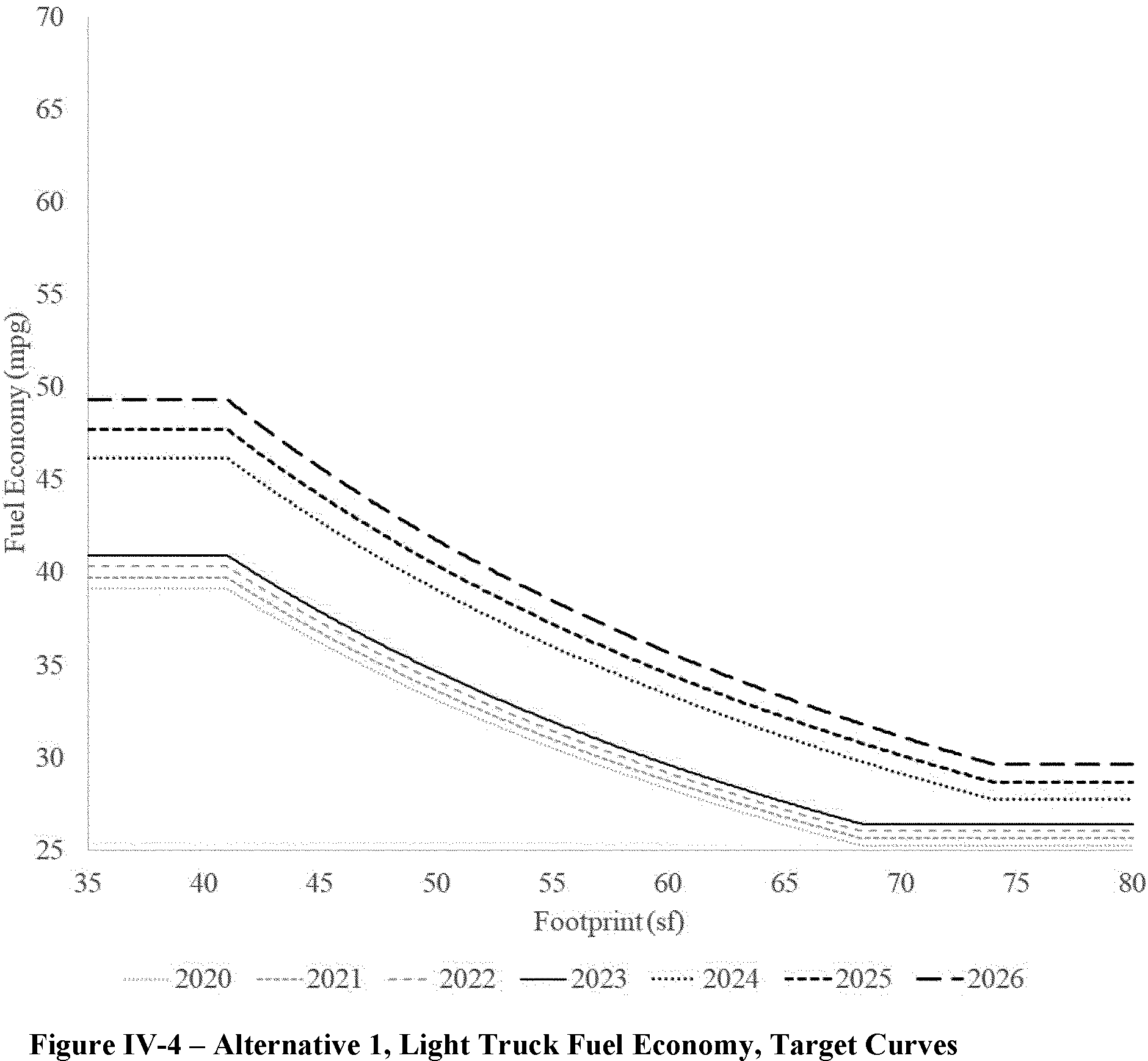 The proposed amended CAFE standards would increase in stringency from MY 2023 levels by 8 percent per year, for both passenger cars and light trucks over MYs 2024-2026. NHTSA tentatively concludes that this level is maximum feasible for these model years, as discussed in more detail in Section VI, and seeks comment on that conclusion. The proposal considers a range of regulatory alternatives, consistent with NHTSA's obligations under the National Environmental Policy Act (NEPA) and Executive Order 12866. While E.O. 13990 directed the review of CAFE standards for MYs 2021-2026, statutory lead time requirements mean that the soonest model year that can currently be amended in the CAFE program is MY 2024. The proposed standards would remain vehicle footprint-based, like the CAFE standards in effect since MY 2011. Recognizing that many readers think about CAFE standards in terms of the miles per gallon (mpg) values that the standards are projected to eventually require, NHTSA currently projects that the proposed standards would require, on an average industry fleet-wide basis, roughly 48 mpg in MY 2026. NHTSA notes both that real-world fuel economy is generally 20-30 percent lower than the estimated required CAFE level stated above, and also that the actual CAFE standards are the footprint target curves for passenger cars and light trucks, meaning that ultimate fleet-wide levels will vary depending on the mix of vehicles that industry produces for sale in those model years. Table I-1 shows the incremental differences in stringency levels for passenger cars and light trucks, by regulatory alternative, in the model years subject to regulation.