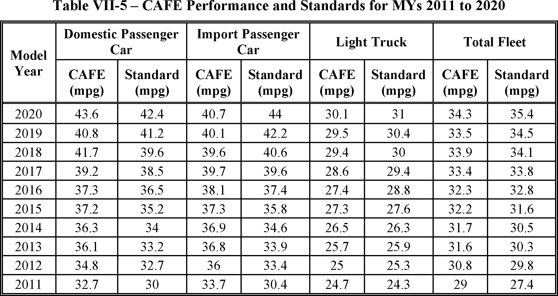 Final compliance data have been verified by EPA and are published on the NHTSA's Public Information Center (PIC) site. MY 2017 is currently the most-recent model year verified by EPA.