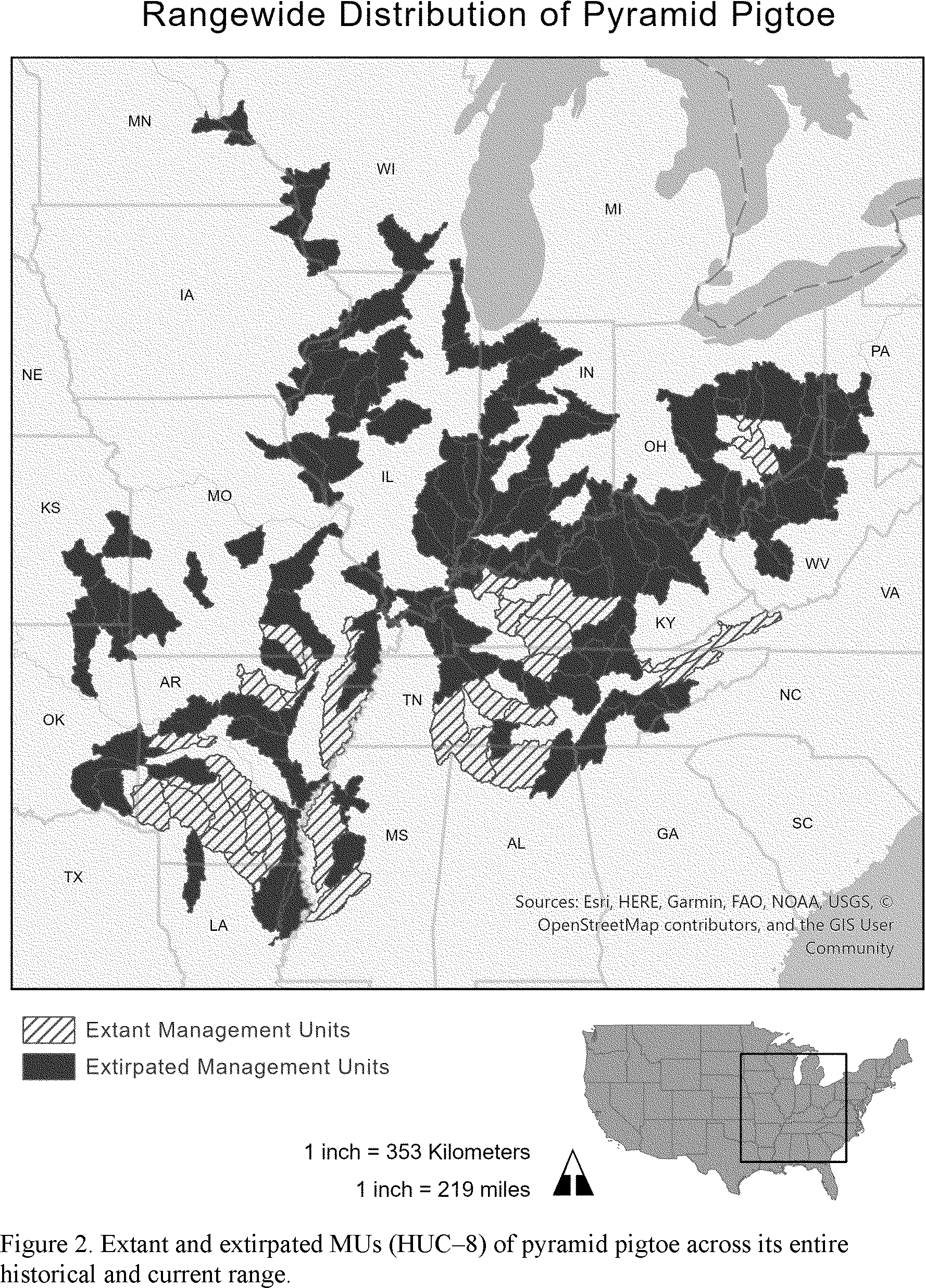 the Arkansas-White-Red, Lower Mississippi, Missouri, and Ohio River regions (Hydrologic Unit Code 2 scale, Seaber et al. 1987, pp. 3-4), and it is extirpated from the Missouri and Upper Mississippi River regions (Figure 1).