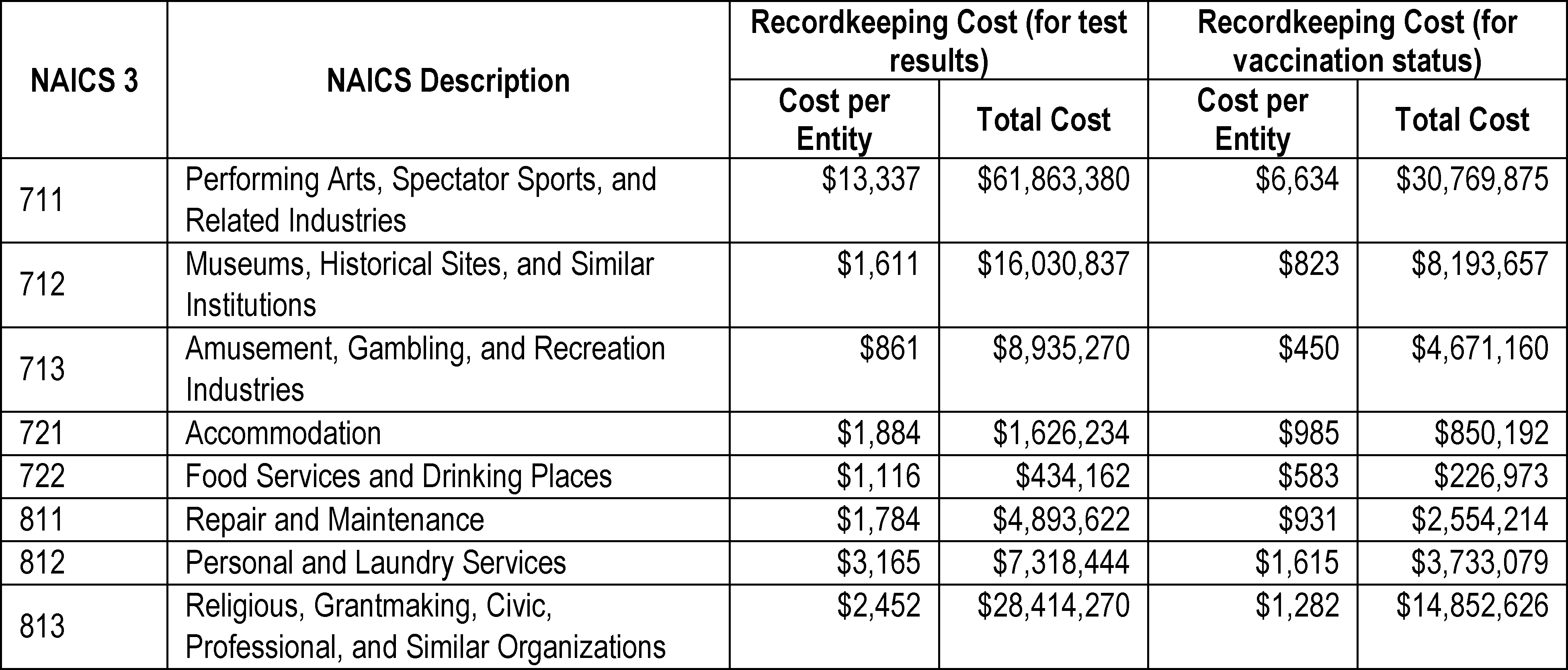 These results are presented in the Excel ETS Revenue Threshold Test Tables available in the Docket for this ETS. The data used for six-digit NAICS were from the Bureau of the Census, available every five years (2002, 2007, 2012, 2107).