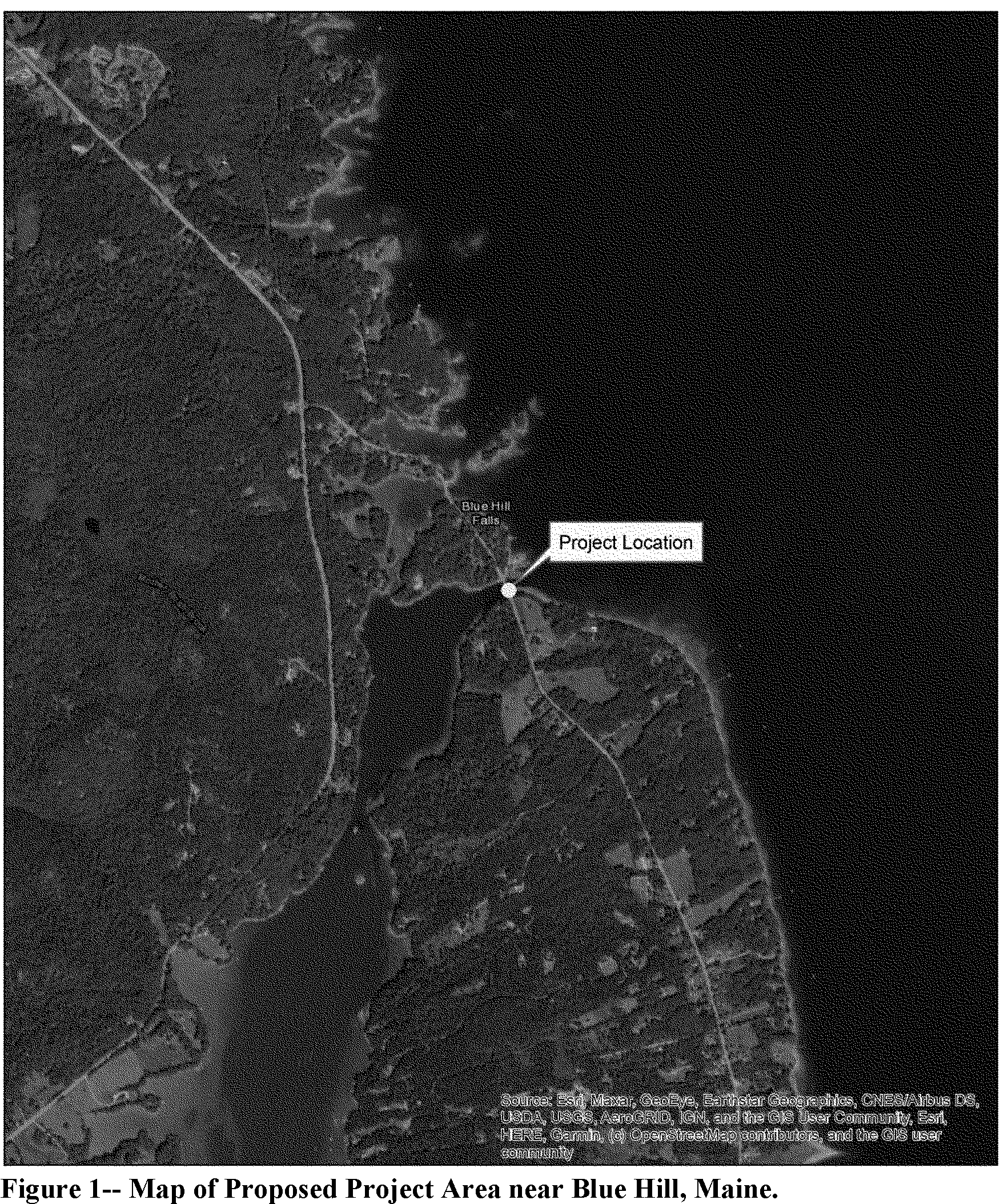 The project is located in the town of Blue Hill, Maine, approximately 28 miles (45 kilometers) southeast of Bangor. The Falls Bridge carries State Route 175 over the Salt Pond Outlet (Figure 1). The Falls Bridge provides the principal opening between the Salt Pond, a one square mile (2.59 square kilometer (km)) tidal estuary, and the Atlantic Ocean. With each tidal cycle a significant volume of water passes through the bridge opening, generating high flow velocities and a “hydraulic jump” during mid-tide periods that is colloquially referred to as the reversing falls. The reversing falls, the Falls Bridge itself, and the natural beauty of the area has caused the Falls Bridge to become a destination for sightseers, nature enthusiasts, and recreationists.