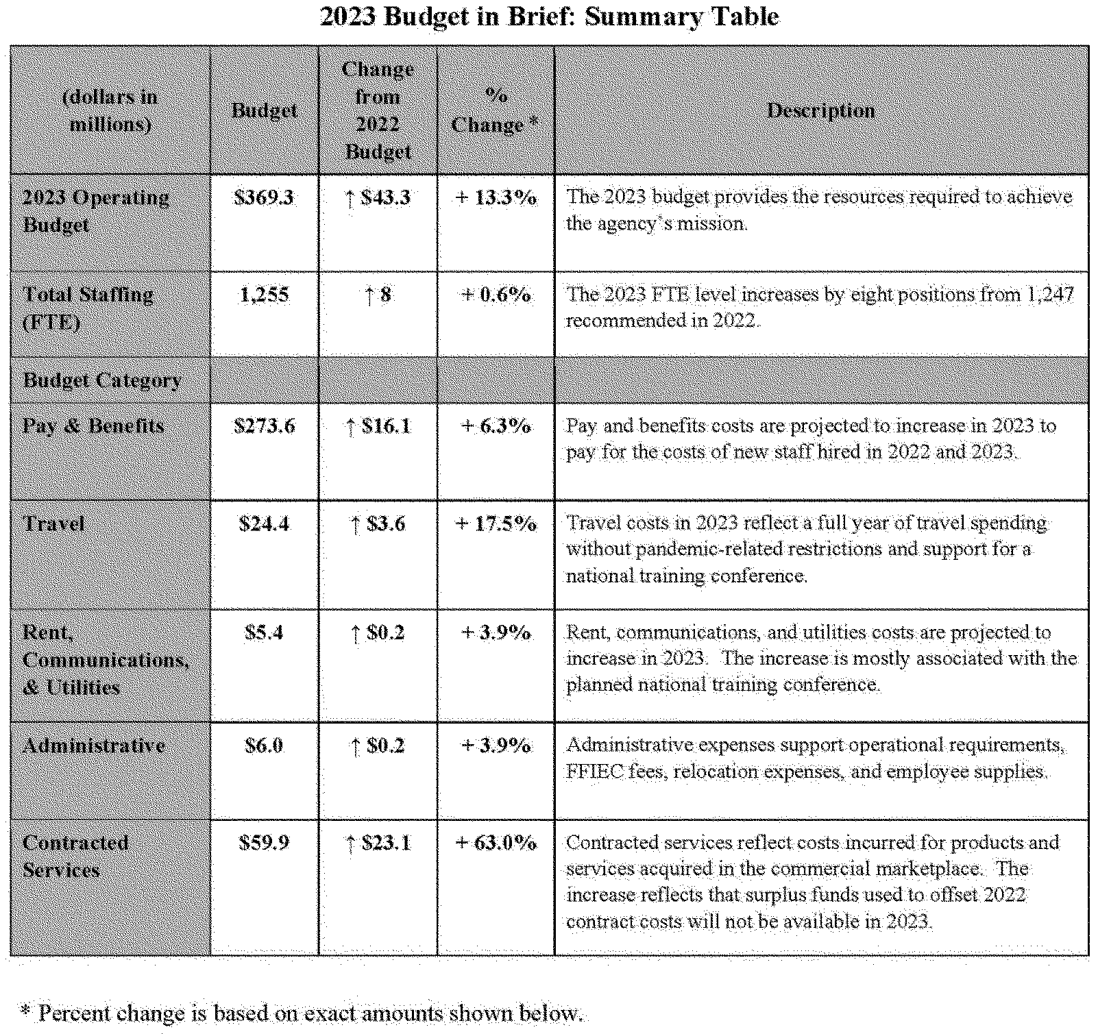 1. A proposed 48 FTE net increase in permanent agency staffing compared to 2021, which will support critical areas necessary to operate as an effective federal financial regulator capable of addressing emerging issues.