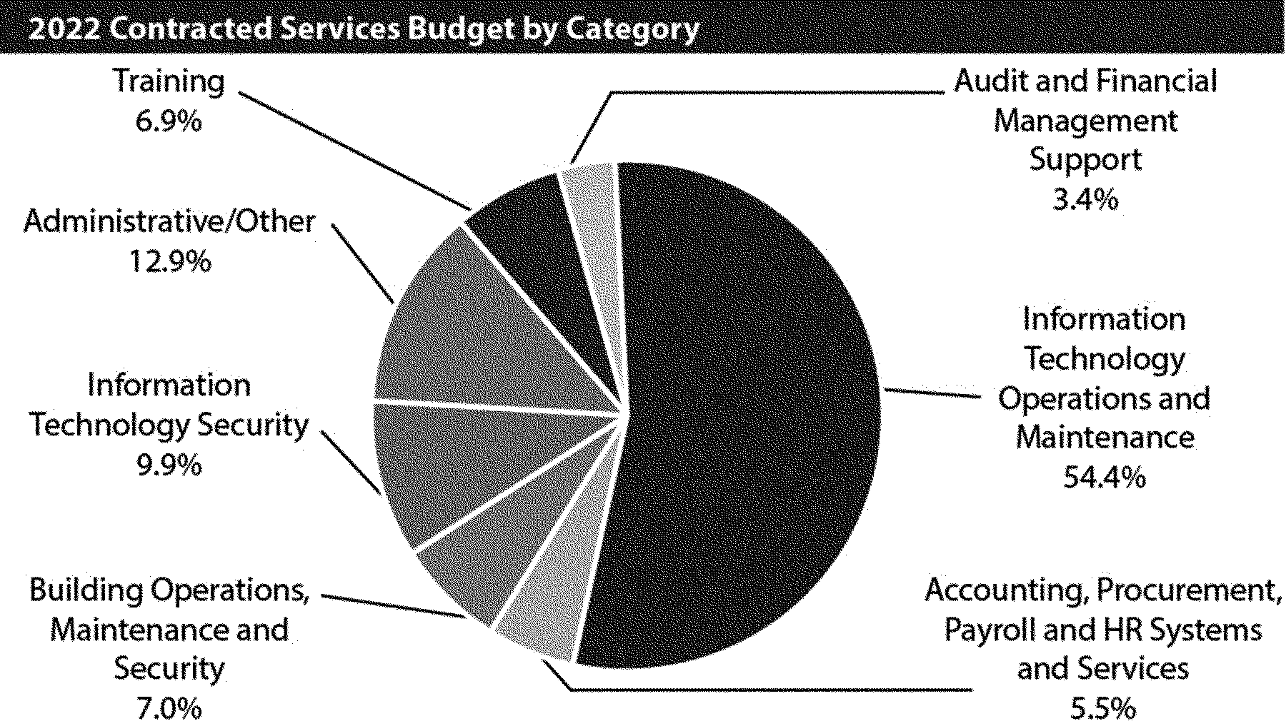 The following chart presents the major categories of spending supported by the 2022 budget, while specific adjustments to the 2021 Board-approved budget are discussed in further detail below: