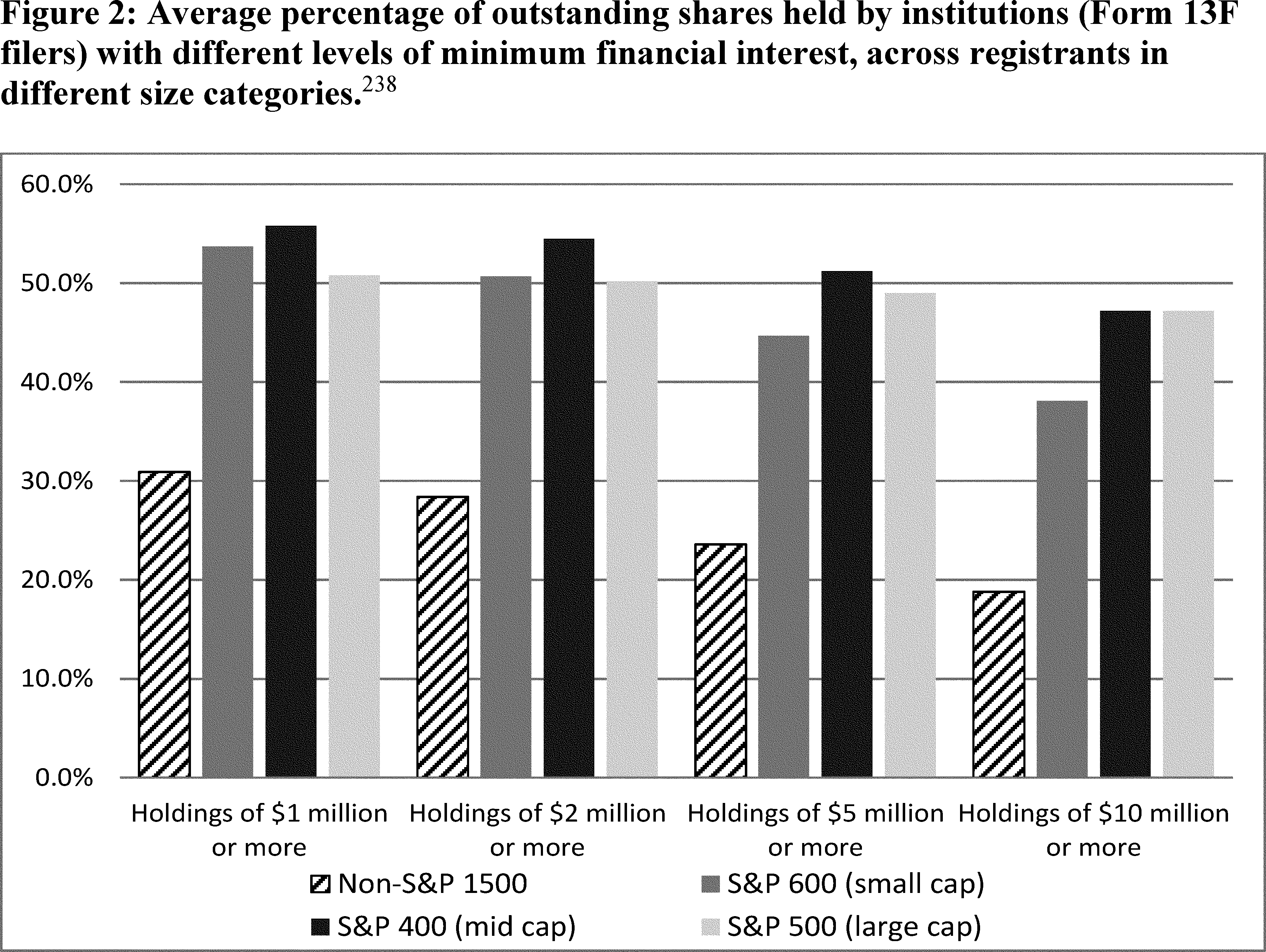 Section IV.B.1.b for the frequency and size of institutional blockholdings among potentially affected registrants for which this data is available.