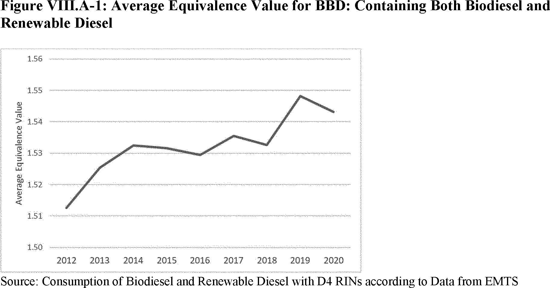 Under 40 CFR 80.1415(b)(4), renewable diesel with a lower heating value of at least 123,500 Btu/gallon is assigned an Equivalence Value of 1.7. A minority of renewable diesel has a lower heating value below 123,500 BTU/gallon and is therefore assigned an Equivalence Value of 1.5 or 1.6 based on applications submitted under 40 CFR 80.1415(c)(2).
