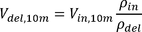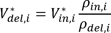 The AHRI Operations Manual for Residential Water Heater Certification Program specifies that the outlet water volume is equal to the inlet water volume times the inlet water density divided by the outlet water density.