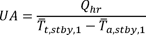 The subscript “stby,1” refers to the standby period in which the standby loss coefficient is determined. The subscripts “t” and “a” refer to the mean tank temperature and ambient temperature, respectively.