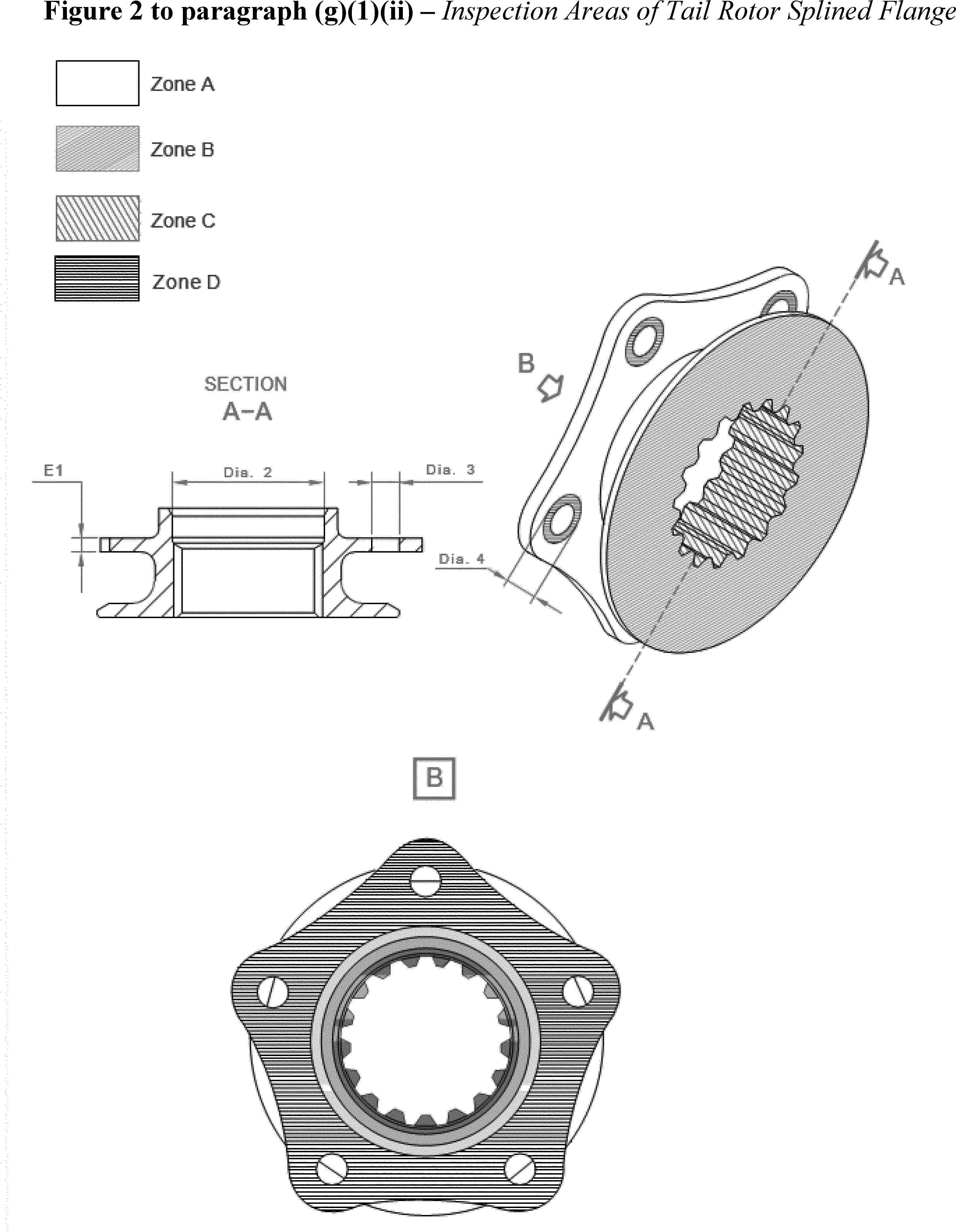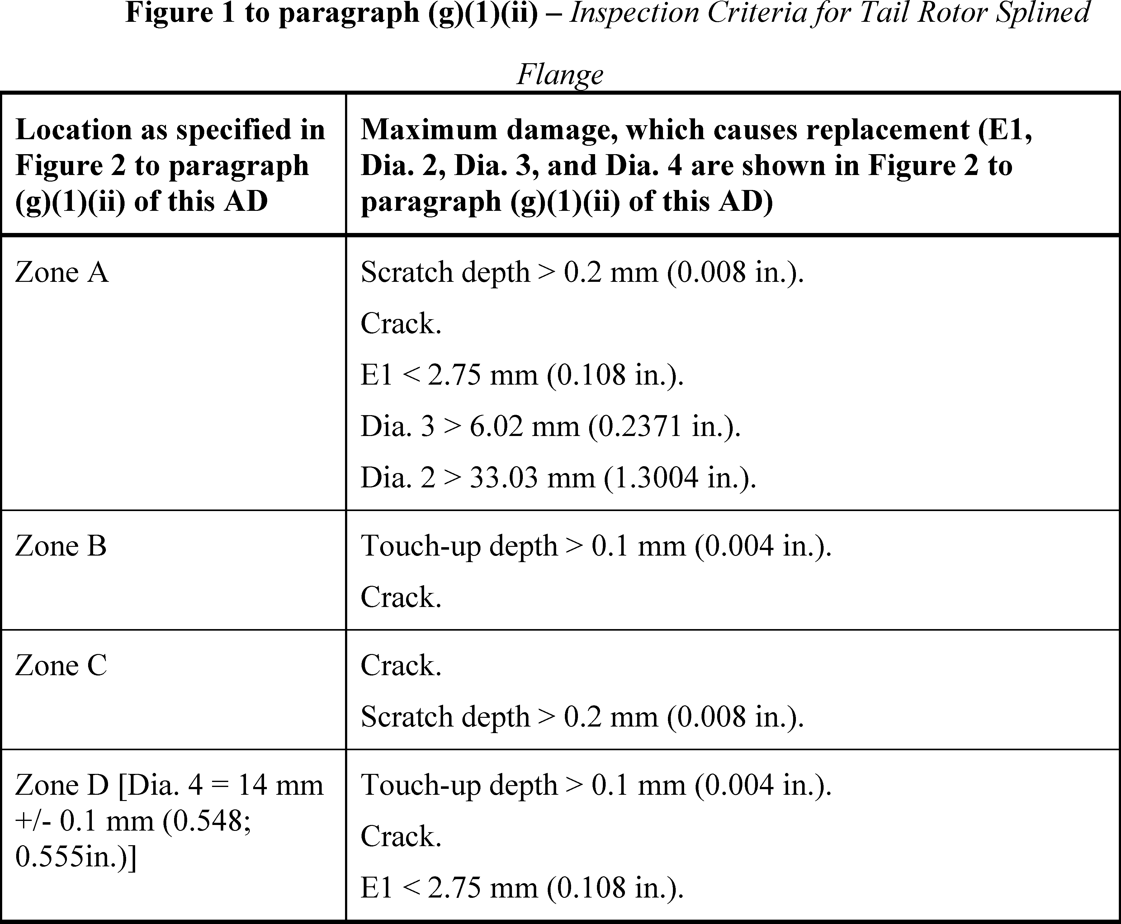 (ii) Inspect the TR splined flange for corrosion, impacts, fretting, wear, and a crack in the areas identified in Figure 2 to paragraph (g)(1)(ii) of this AD. If the condition of the part (including corrosion, impacts, fretting, wear, or cracks) exceeds the criteria as specified in Figure 1 to paragraph (g)(1)(ii) of this AD, before further flight, remove the splined flange from service and replace with an airworthy part.