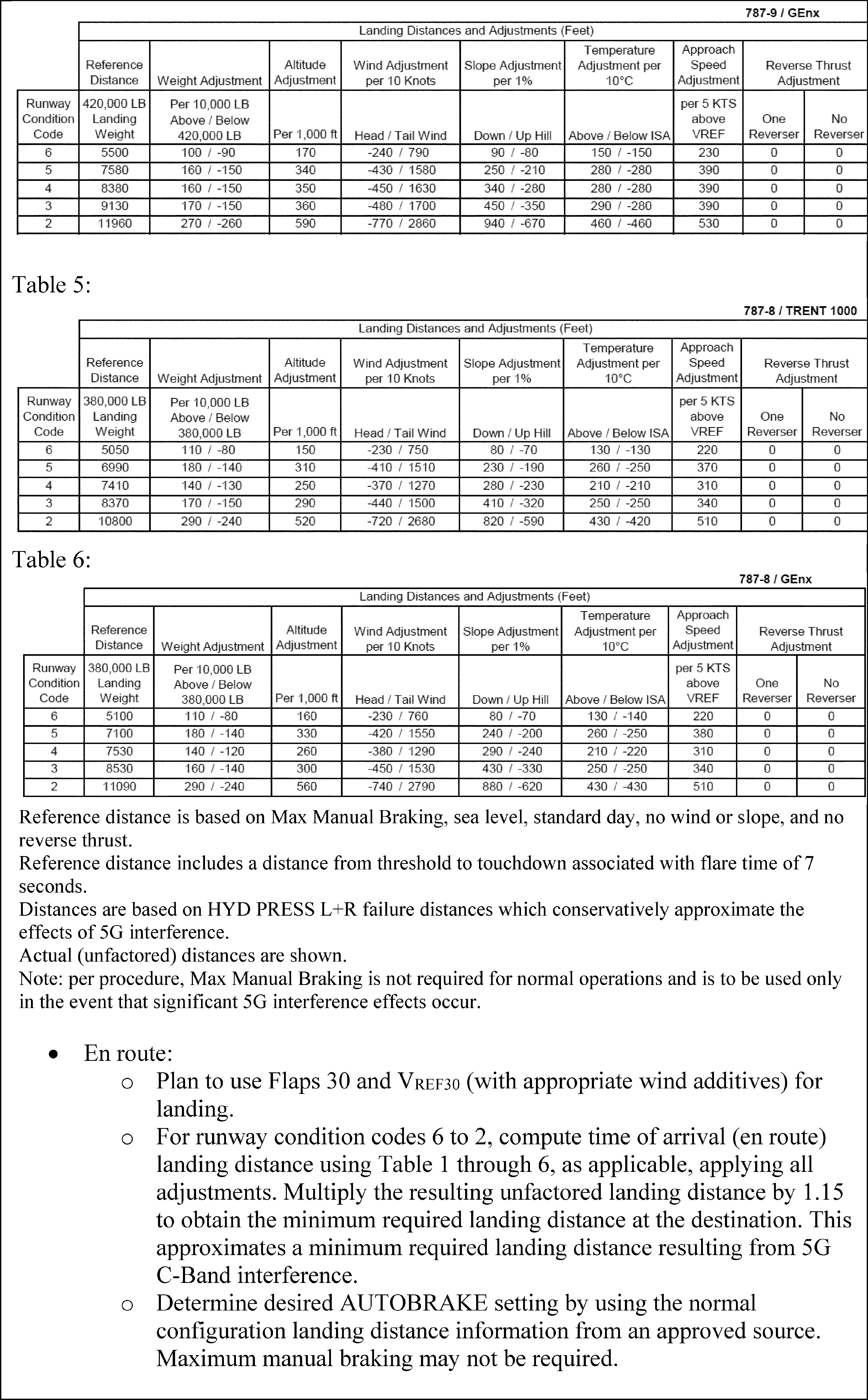 The FAA is adopting a new airworthiness directive (AD) for all The Boeing Company Model 787-8, 787-9, and 787-10 airplanes. This AD was prompted by a determination that radio altimeters cannot be relied upon to perform their intended function if they experience interference from wireless broadband operations in the 3.7-3.98 GHz frequency band (5G C-Band), and a recent determination that, during landings, as a result of this interference, certain airplane systems may not properly transition from AIR to GROUND mode when landing on certain runways, resulting in degraded deceleration performance and longer landing distance than normal due to the effect on thrust reverser deployment, speedbrake deployment, and increased idle thrust. This AD requires revising the limitations and operating procedures sections of the existing airplane flight manual (AFM) to incorporate limitations prohibiting certain landings and the use of certain minimum equipment list (MEL) items, and to incorporate operating procedures for calculating landing distances, when in the presence of 5G C-Band interference as identified by Notices to Air Missions (NOTAMs). The FAA is issuing this AD to address the unsafe condition on these products.