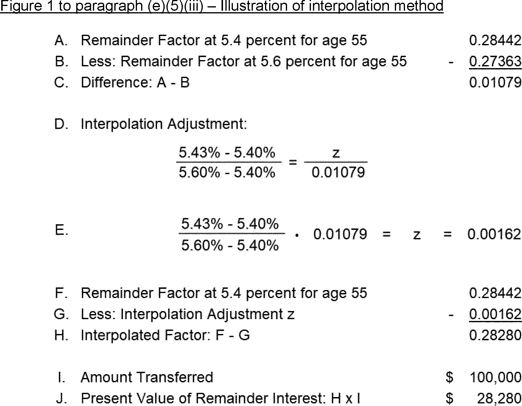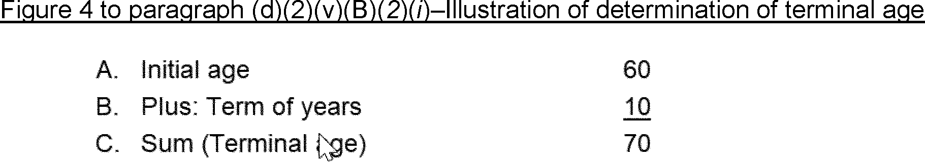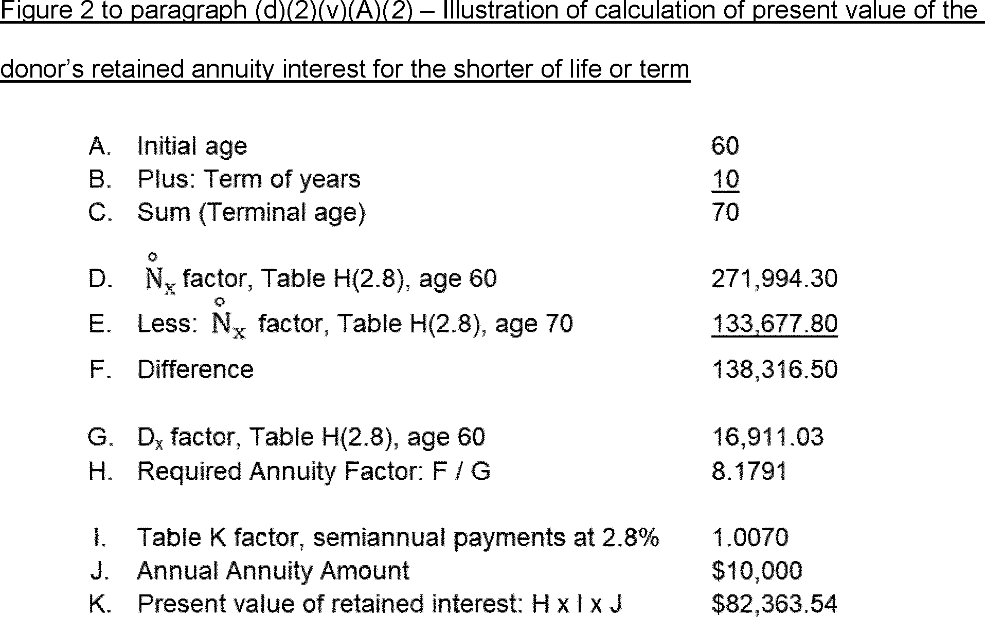5) The actuarial factor for determining the value of the annuity of $52,910.48 per year payable for 13 years or until the prior death of a person aged 60 is derived by the use of factors involving one life and a term of years, derived from Table H. The factor is determined as illustrated in Figure 2 to this paragraph (b)(2)(v)(E)(