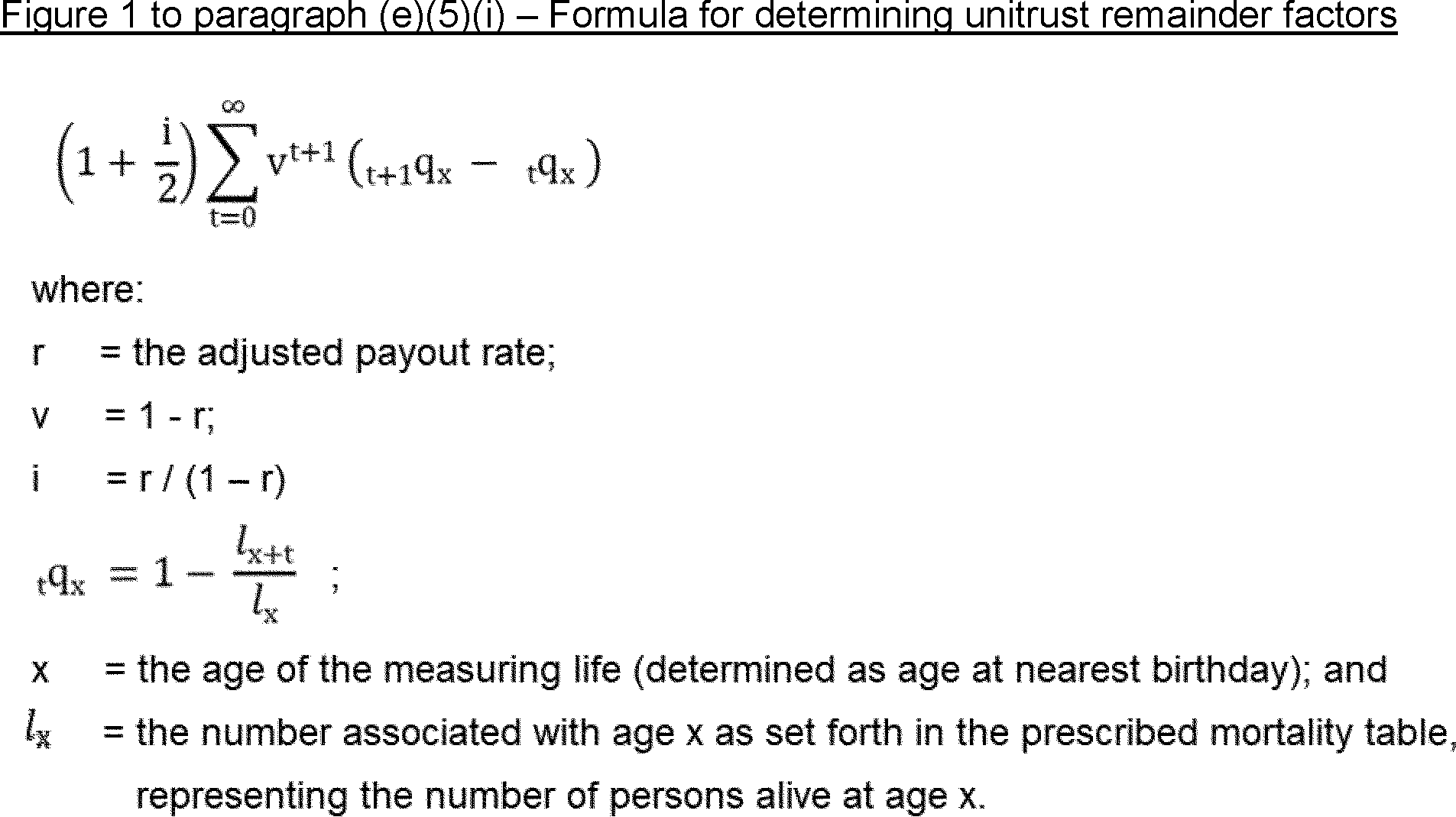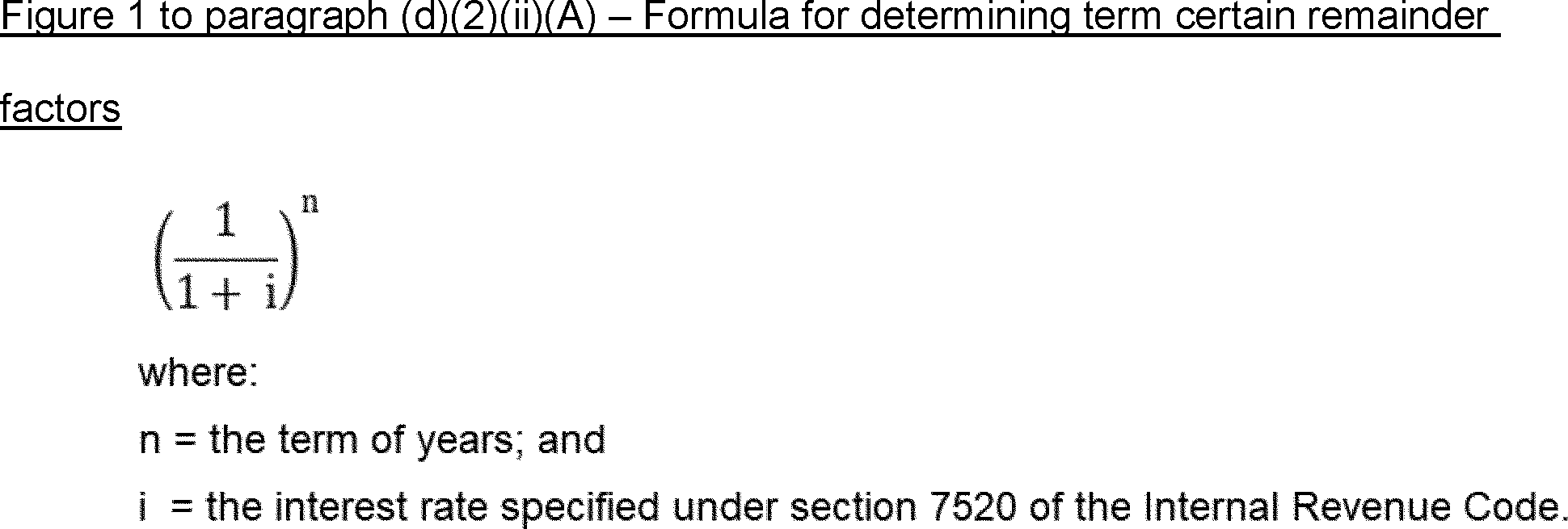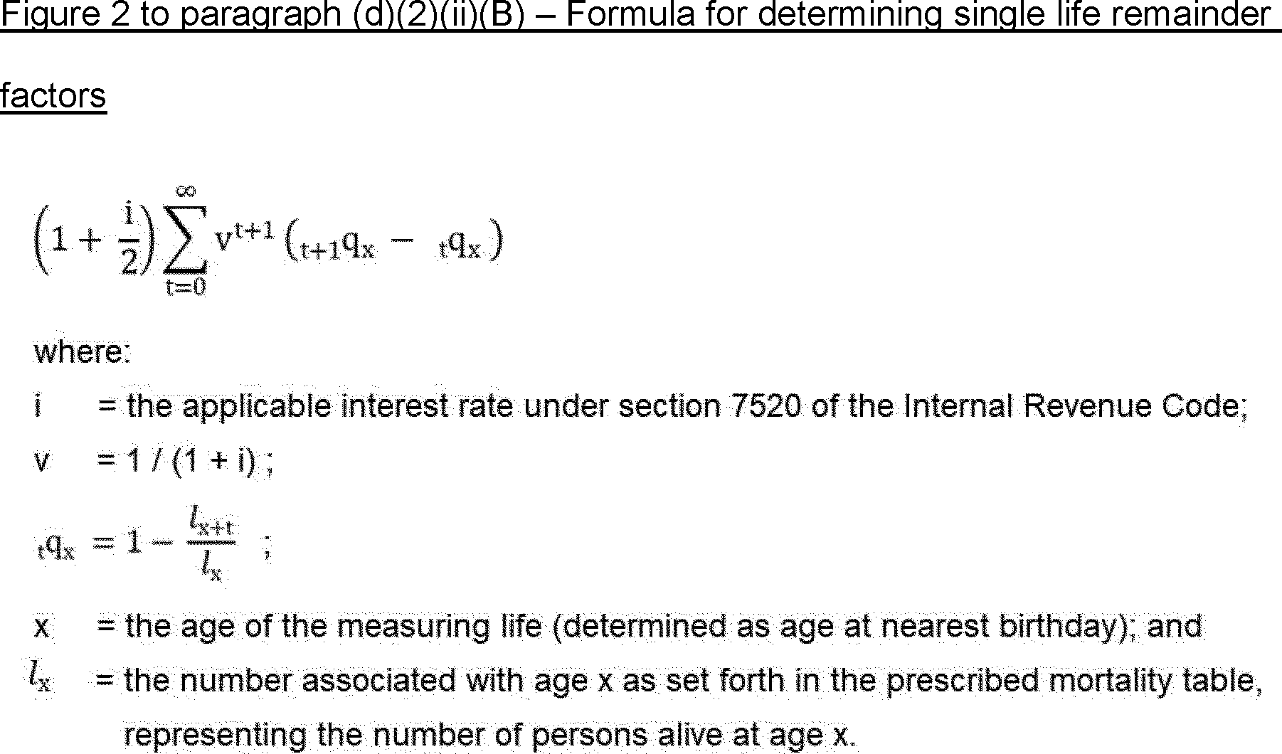 (2) IRS Publication 1458, “Actuarial Valuations Version 4B” (2022). This publication references and explains term certain tables and tables of one and two life valuation factors for determining the present value of remainder interests in a charitable remainder unitrust as defined in § 1.664-3 of this chapter. This publication references Table U(1) (unitrust single life remainder factors), Table U(2) (unitrust two-life last-to-die remainder factors), Table D (actuarial factors used in determining the present value of a remainder interest postponed for a term of years), Table F (adjustment payout rate factors), and Table Z (unitrust commutation factors). See earlier versions of the publication or § 1.664-4A of this chapter for Table U(1) applicable to valuation dates before